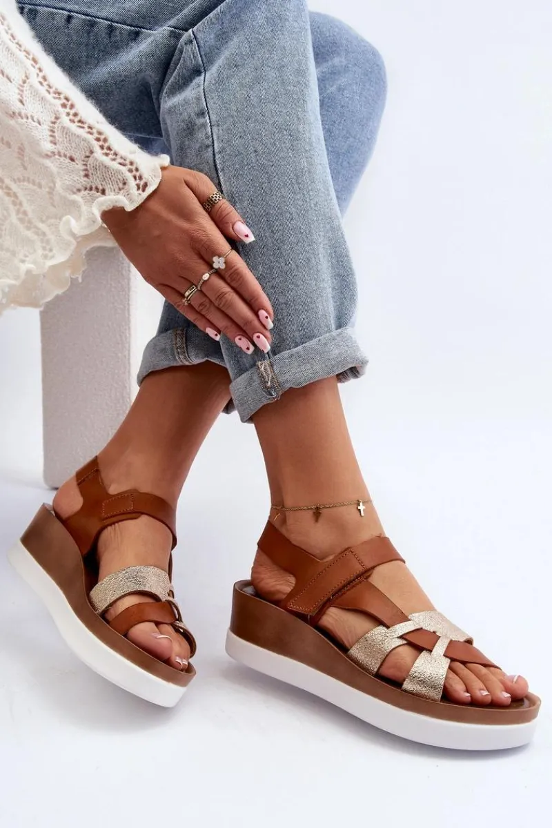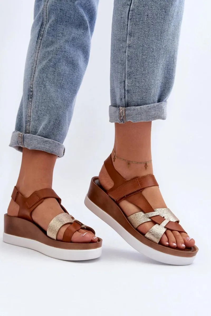 Niezwykle wygodne sandały damskie zostały wykonane z naturalnej skóry. Zapinane na rzep. Osadzone na platformie oraz lekkim koturnie. Miękka, skórzana wkładka zapewni komfort podczas noszenia w upalne dni. Fason ten z pewnością przypadnie Ci do gustu! Przy wyborze rozmiaru prosimy kierować się tabelą rozmiarów.