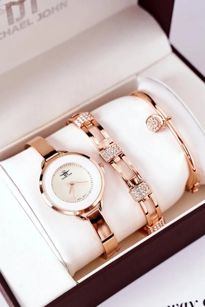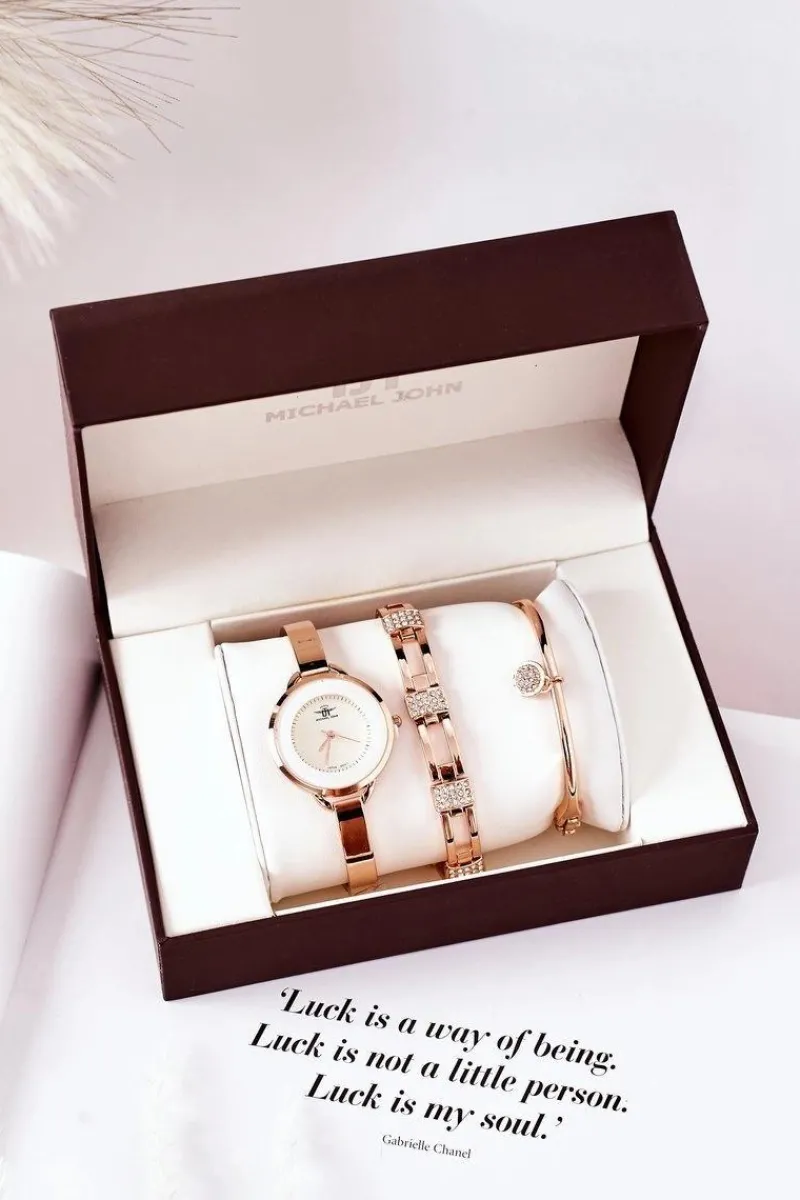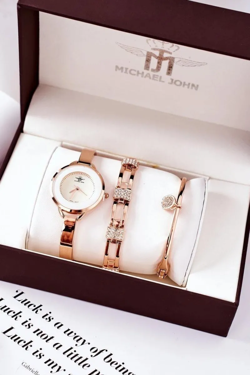 Zegarki|Bransoletki>Michael John Zestaw Zegarek i Dwie Bransoletki Różowe Złoto