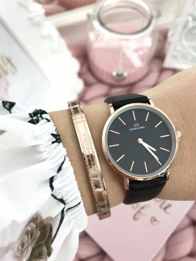 Jules to klasyczna i elegancka linia damskich zegarków Giorgio & Dario. Zegarek posiada delikatnie płaskie szkiełko, dzięki temu jeszcze lepiej prezentuje się na ręce a jednocześnie jest bardziej czytelny. Pasek wykonany z delikatnej w dotyku skóry ekologicznej z możliwością łatwiej regulacji, koperta w złotym kolorze ze stali chirurgicznej, pasuje zarówno do eleganckich jak i codziennych stylizacji. Wysoka jakość wykonania mechanizmu i koperty.