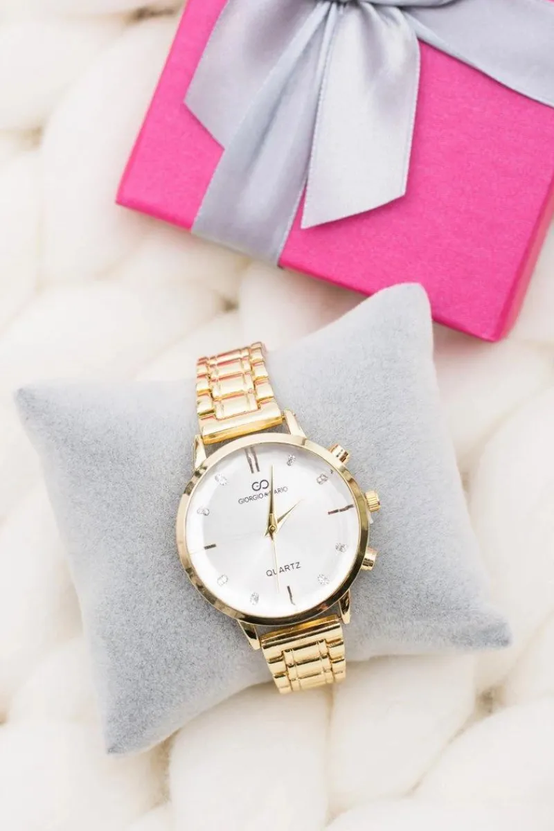 Stylowy damski zegarek marki Giorgio&Dario! Złota bransoleta to gwarancja jakości! Piękna, prosta i elegancko wykończona koperta zadowoli każdą kobietę! W zestawie pudełko w LOSOWYM kolorze oraz poduszeczka. Kup teraz w świetnej cenie!