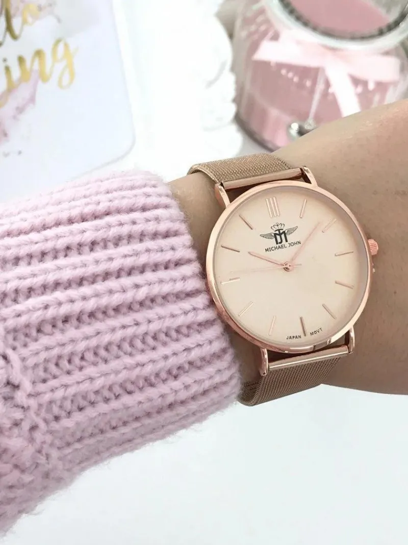 Mówią że „Diamenty to najlepsi przyjaciele kobiety” – w tym stwierdzeniu z pewnością tkwi ziarno prawdy ale my nie do końca się z nim zgadzamy. Równie gustownym dodatkiem kobiecej garderoby jest dobrze dobrany zegarek. Zegarek Florence marki Michael John to jeden z najbardziej rozpoznawalnych modeli na świecie. Piękna bransoleta typu mesh, z prostą i szybką regulacją oraz koperta wykonana ze stali chirurgicznej. Zegarek występuje w wersji z 40 oraz 32mm tarczą, w wersji ze stalową bransoletą w kolorze różowego złota oraz srebrnej. Najwyższa jakość wykonania na wyciągnięcie ręki.