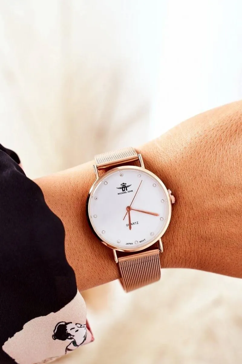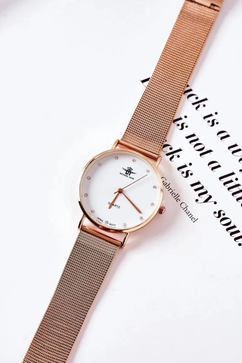 Zegarki>Michael John Zegarek Na Bransolecie Mesh Różowe Złoto