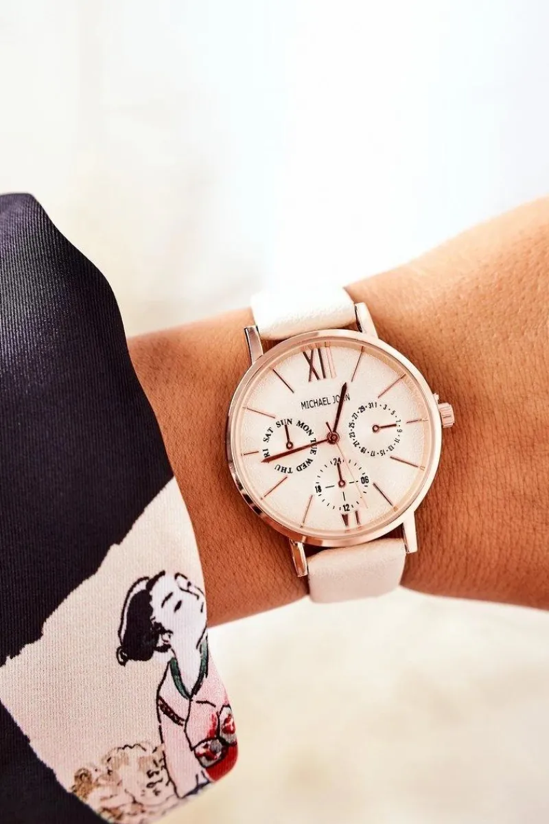 Piękny zegarek marki Michael John. Tarcza zegarka wykonana jest ze stali nierdzewnej, a pasek ze skóry ekologicznej.