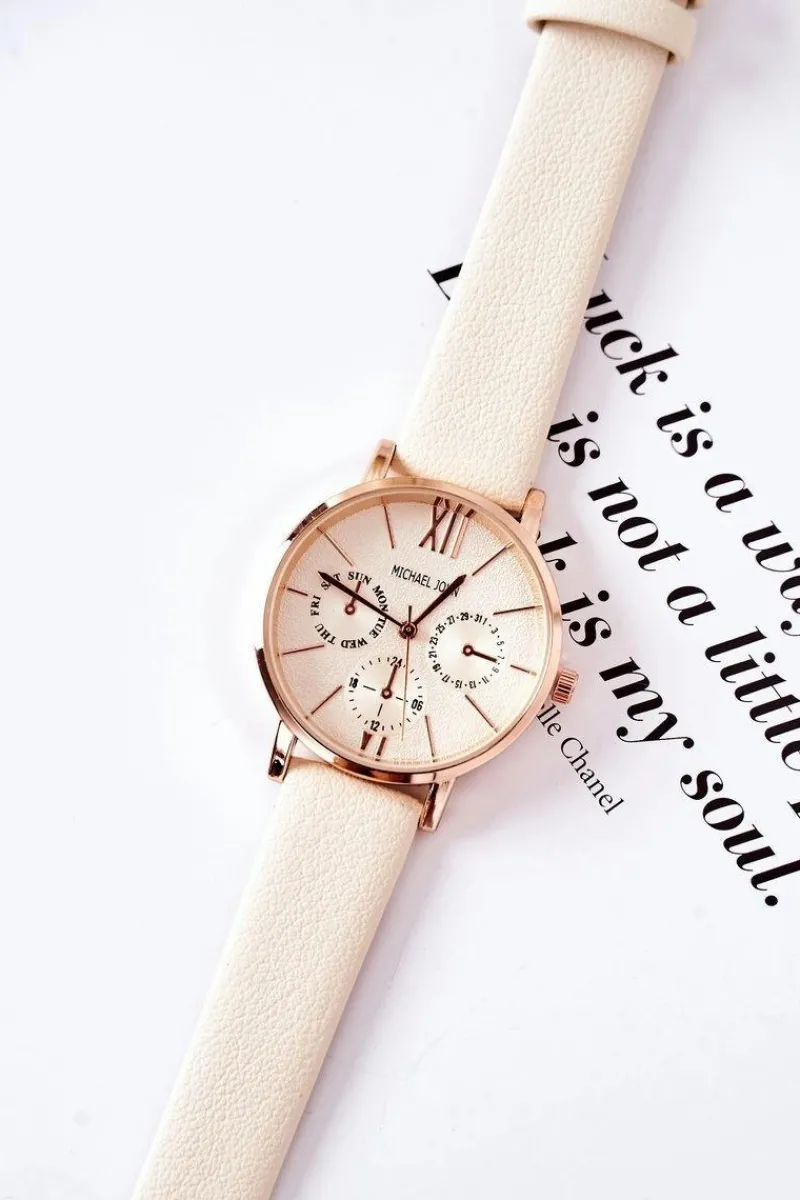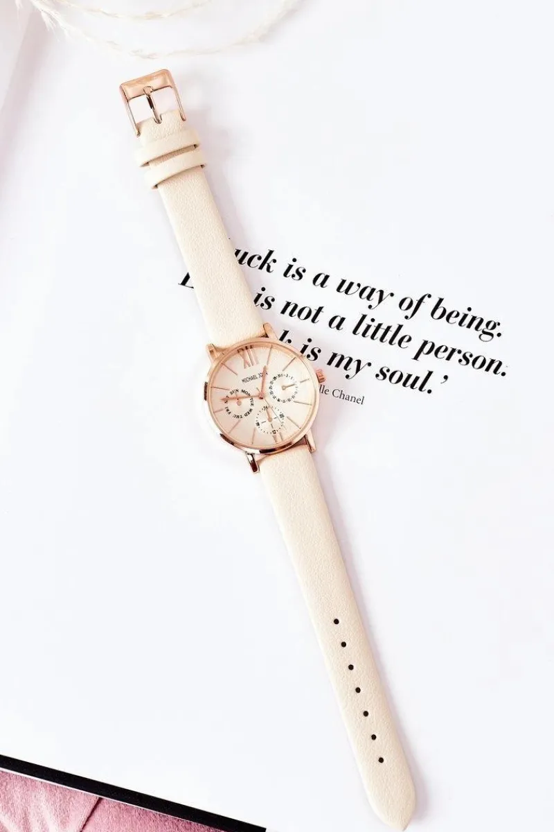 Zegarki>Michael John Zegarek Na Skórzanym Pasku Beżowy
