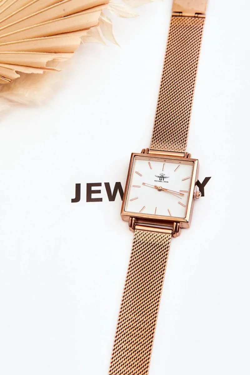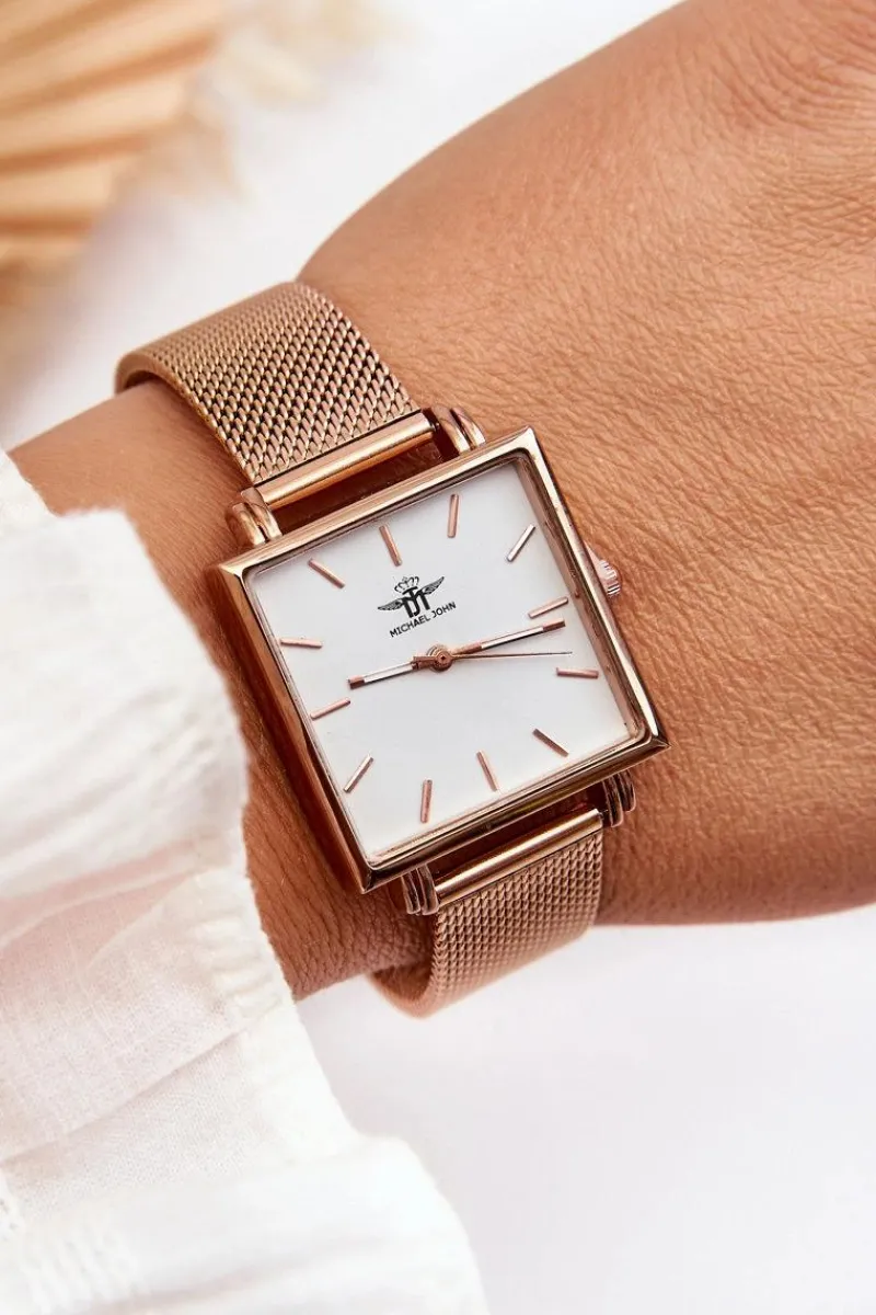 Zegarki>Michael John Zegarek Z Kwadratową Tarczą Różowe Złoto