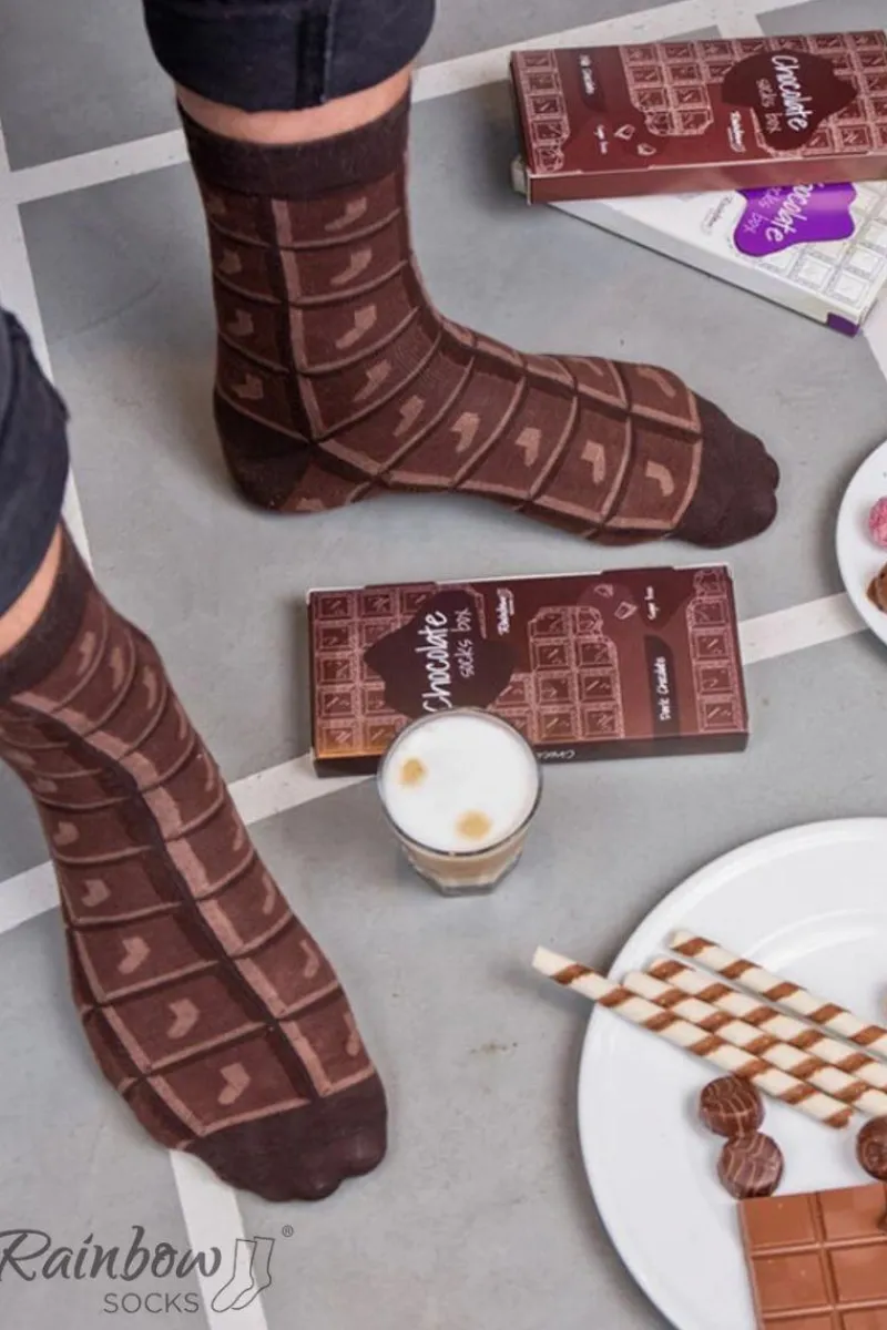 Nie możesz przetrwać dnia bez kostki czekolady? Chciałbyś odnaleźć taką, która jest słodka i wege, ale jednocześnie nie zawiera cukru? Oto ona! Chocolate Socks Box – śmieszne skarpetki, idealne dla każdego łasucha. Tak, tak – to nie jest prawdziwa tabliczka czekolady, chociaż tak wygląda. W oryginalnym pudełeczku owinięta jest para pysznych, szalonych skarpet. Porzuć swoją dietę bez wyrzutów sumienia i ciesz się niesamowitymi skarpetkami na miarę prawdziwej belgijskiej czekolady!