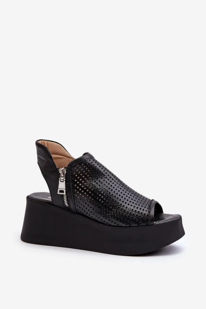 Sandały damskie na koturnie to połączenie elegancji i wygody. Wykonane ze skóry naturalnej, zapewniają trwałość i komfort noszenia. Delikatny ażurowy wzorek nadaje im lekkości i wdzięku, idealnie pasując do letnich stylizacji. Zapinane na zamek gwarantują stabilne trzymanie stopy. To doskonały wybór na letnie dni, zarówno do codziennych, jak i bardziej formalnych okazji. Przy wyborze rozmiaru prosimy kierować się tabelą rozmiarów.
