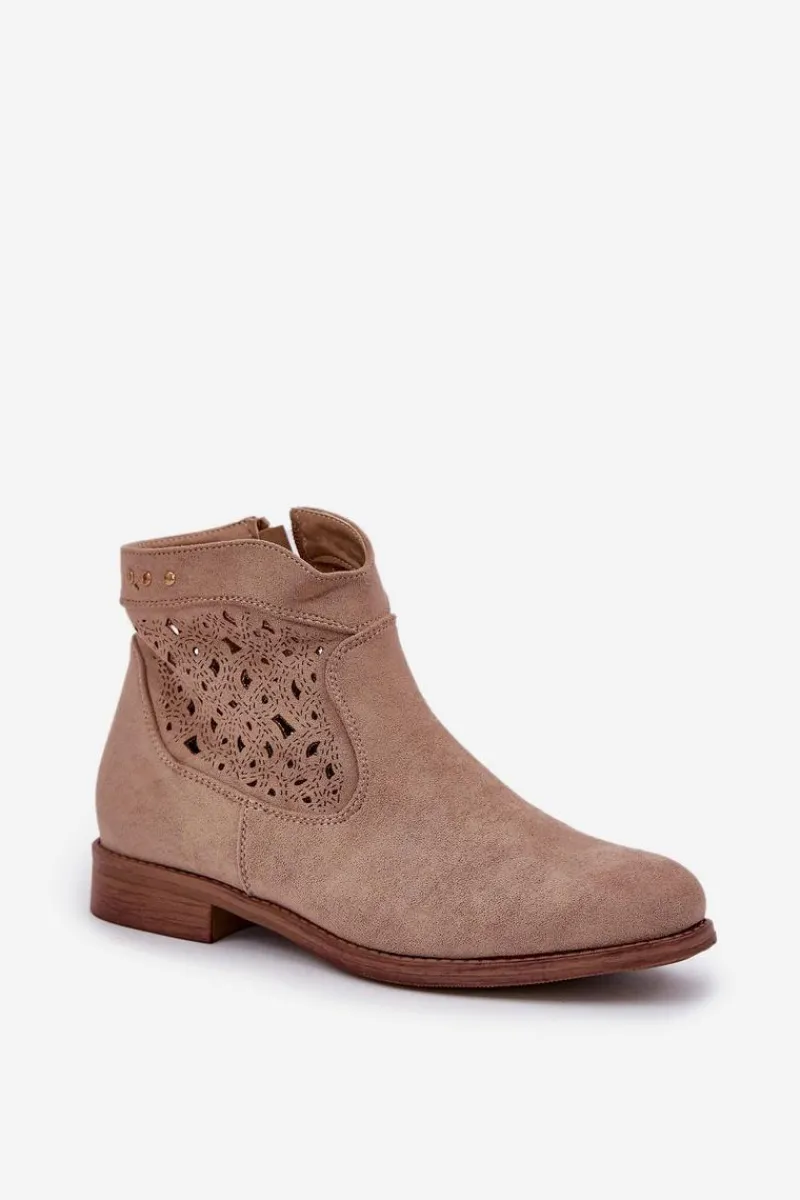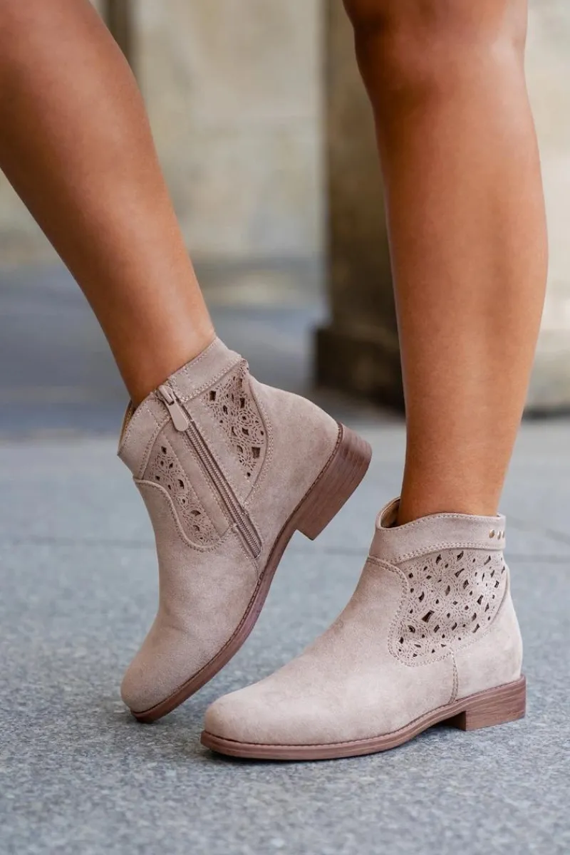 Botki damskie od marki S.Barski, wykonane z eko zamszu, to elegancka i wygodna propozycja na chłodniejsze dni. Osadzone na płaskim obcasie, zapewniają stabilność i komfort przez cały dzień. Zapinane na zamek, co ułatwia ich zakładanie. Zaokrąglone noski dodają im subtelnego charakteru, a ażurowa cholewka nadaje lekkości i nowoczesnego stylu. Te botki to doskonały wybór do codziennych stylizacji! Przy wyborze rozmiaru prosimy sugerować się tabelą rozmiarów.