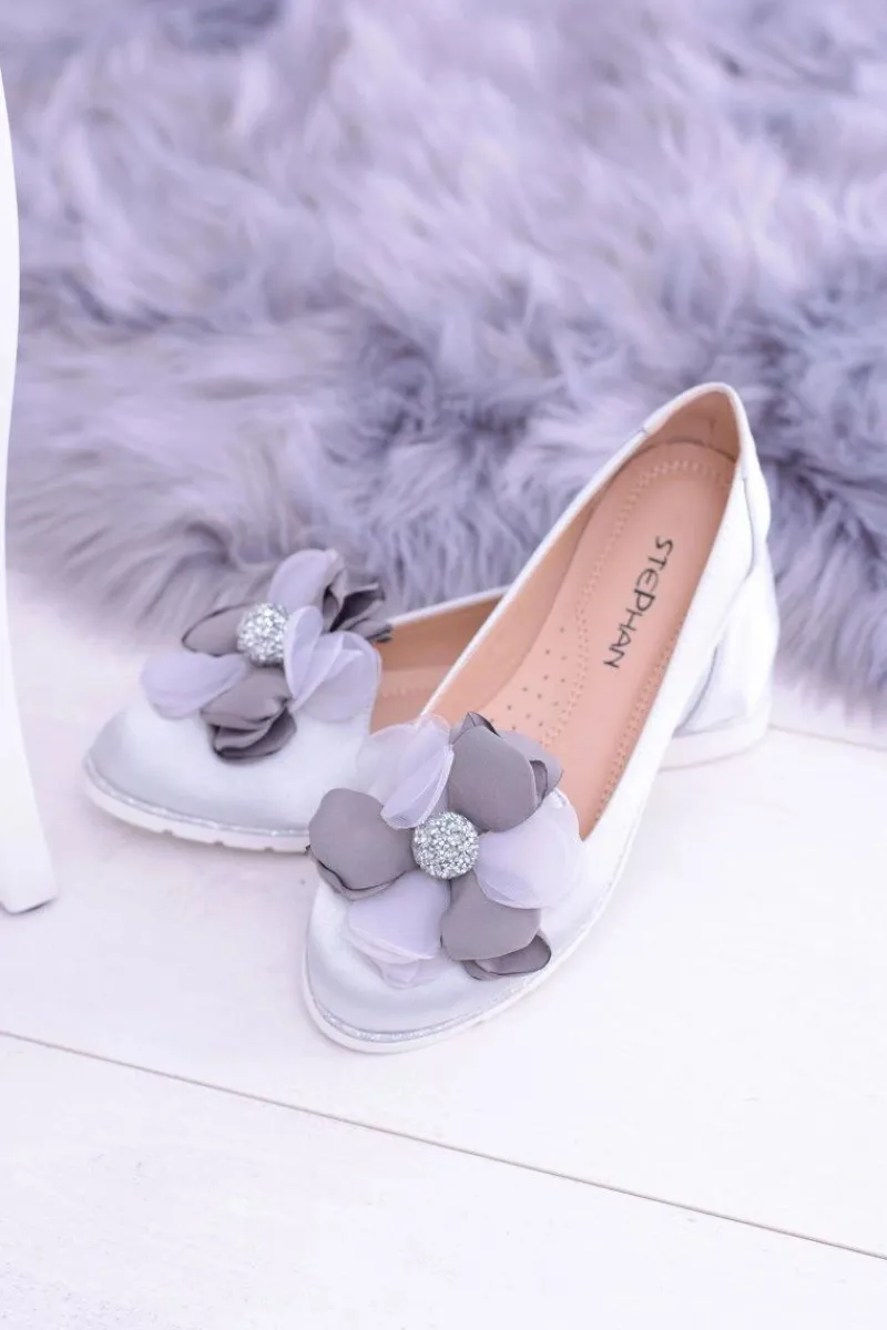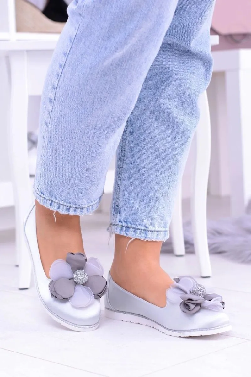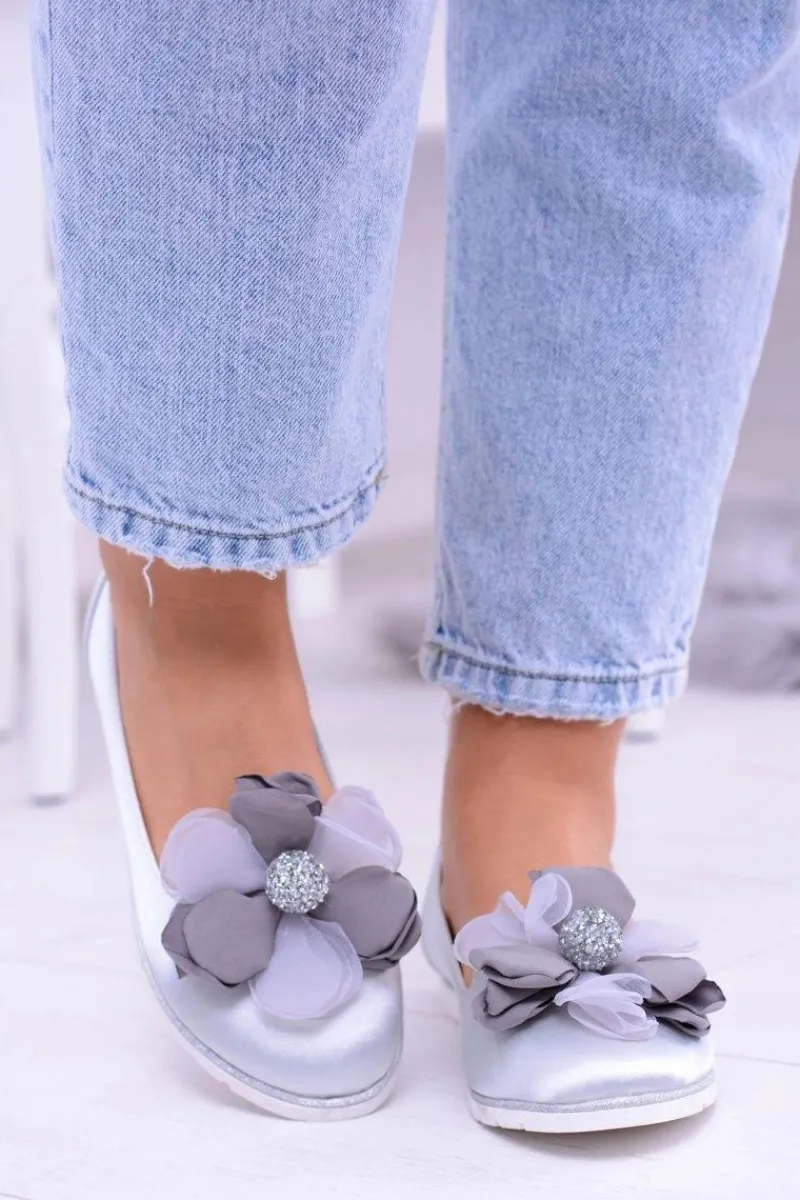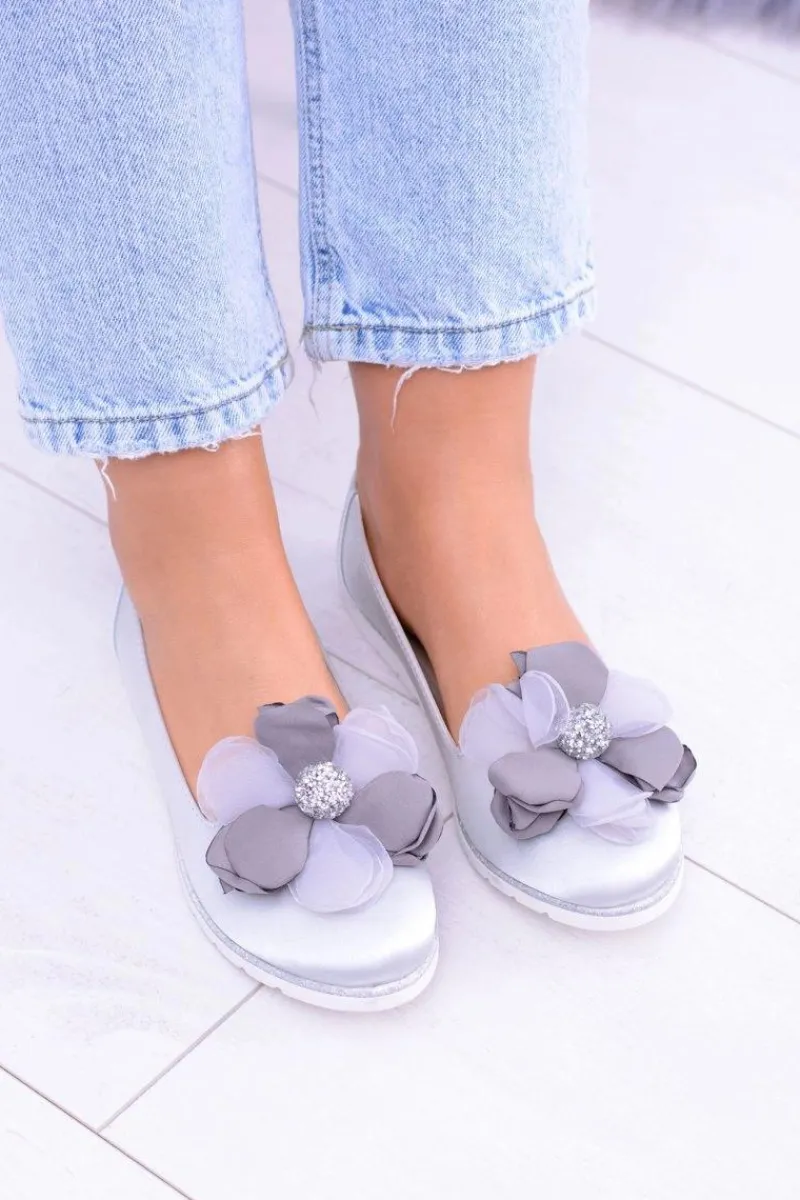 Baleriny Klasyczne>Boto Aksamitne Szare Baleriny Z Dużym Kwiatem Fumiko