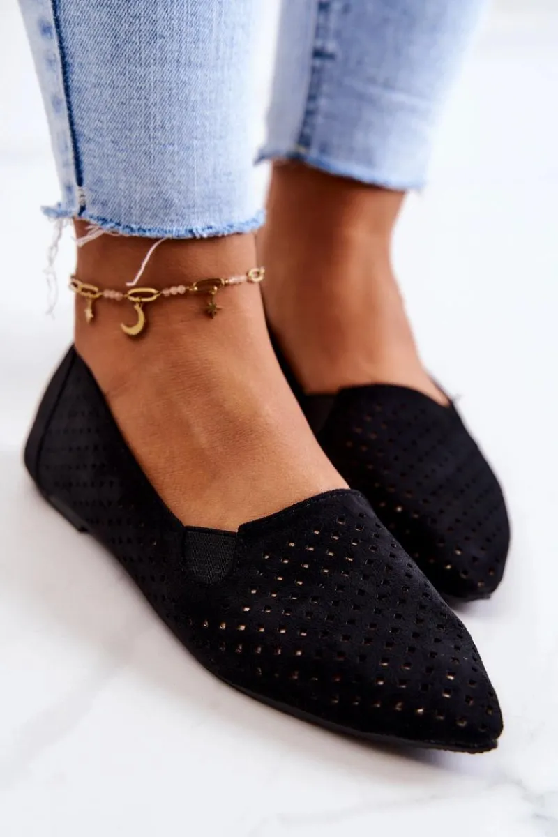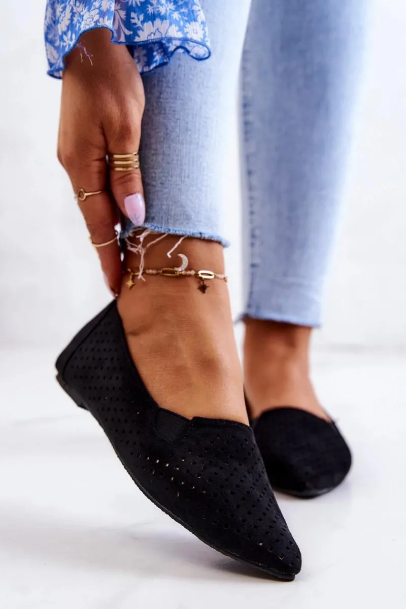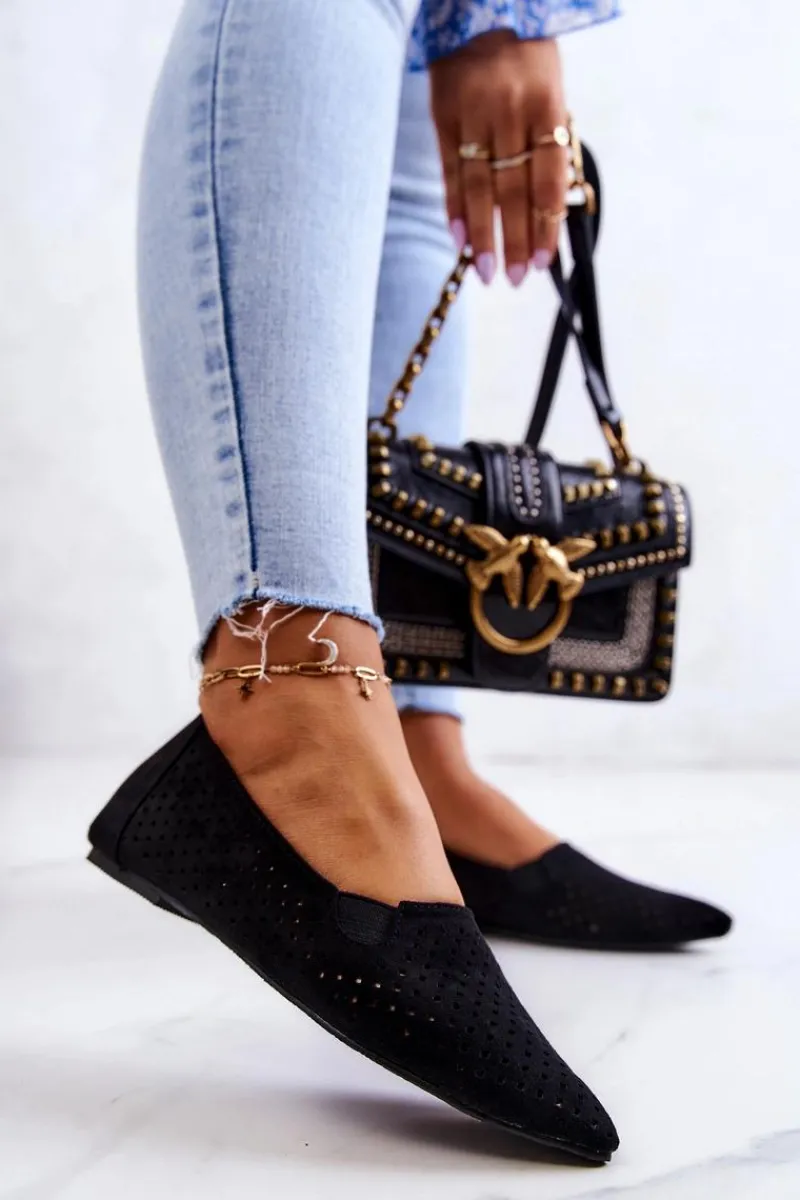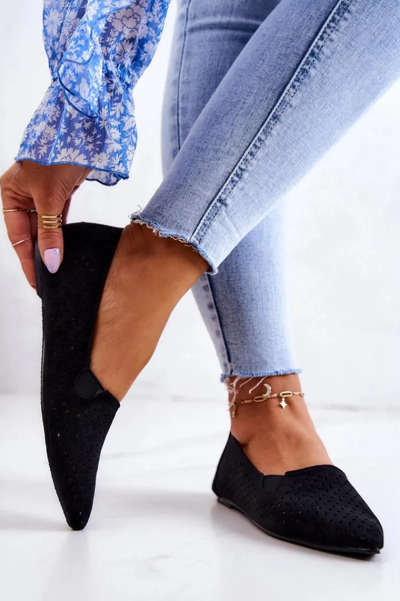 Niezwykłe baleriny dla niezwykłych kobiet! Ażurowy wzór to idealny wybór na wiosenno-letni sezon! Wykonane z eko zamszu. Wkładka wykonana z eko skóry. Model wsuwany. Nosek w szpic. Bardzo wygodne i stylowe, z pewnością spodobają się wszystkim dookoła! Podeszwa wykonana z tworzywa sztucznego. Osadzone na podeszwie z płaskim obcasem. Zapiętek usztywniany. Będą pasować zarówno do casualowych, jak i tych eleganckich stylizacji. Koniecznie te baleriny powinny znaleźć się w Twojej szafie! Przy wyborze rozmiaru prosimy sugerować się tabelą rozmiarów.