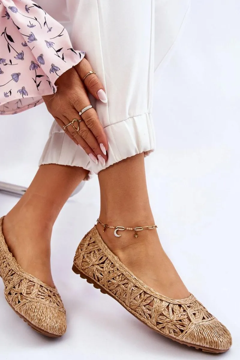Modne balerinki wykonane z tworzywa sztucznego w ażurowy wzór. Świetnie sprawdzą się na wiele okazji. Posiadają miękką, eko skórzaną wkładkę, która zapewni komfort podczas użytkowania. Model klasyczny, wsuwany. Ten fason obuwia powinien znaleźć się w garderobie każdej kobiety! Niezwykle przewiewne, idealne na cieplejsze dni. Niski obcas oraz antypoślizgowa podeszwa zapewni stabilność. Przy wyborze rozmiaru prosimy sugerować się tabelą rozmiarów.
