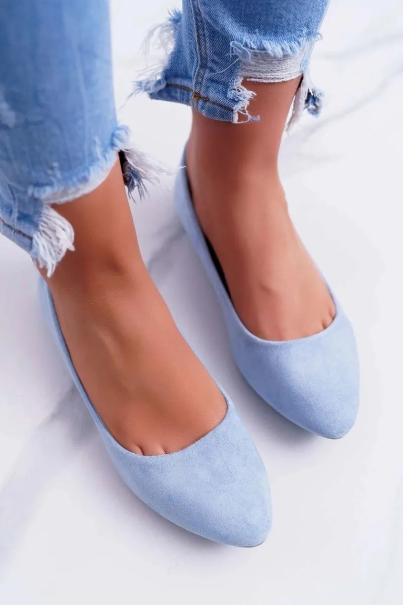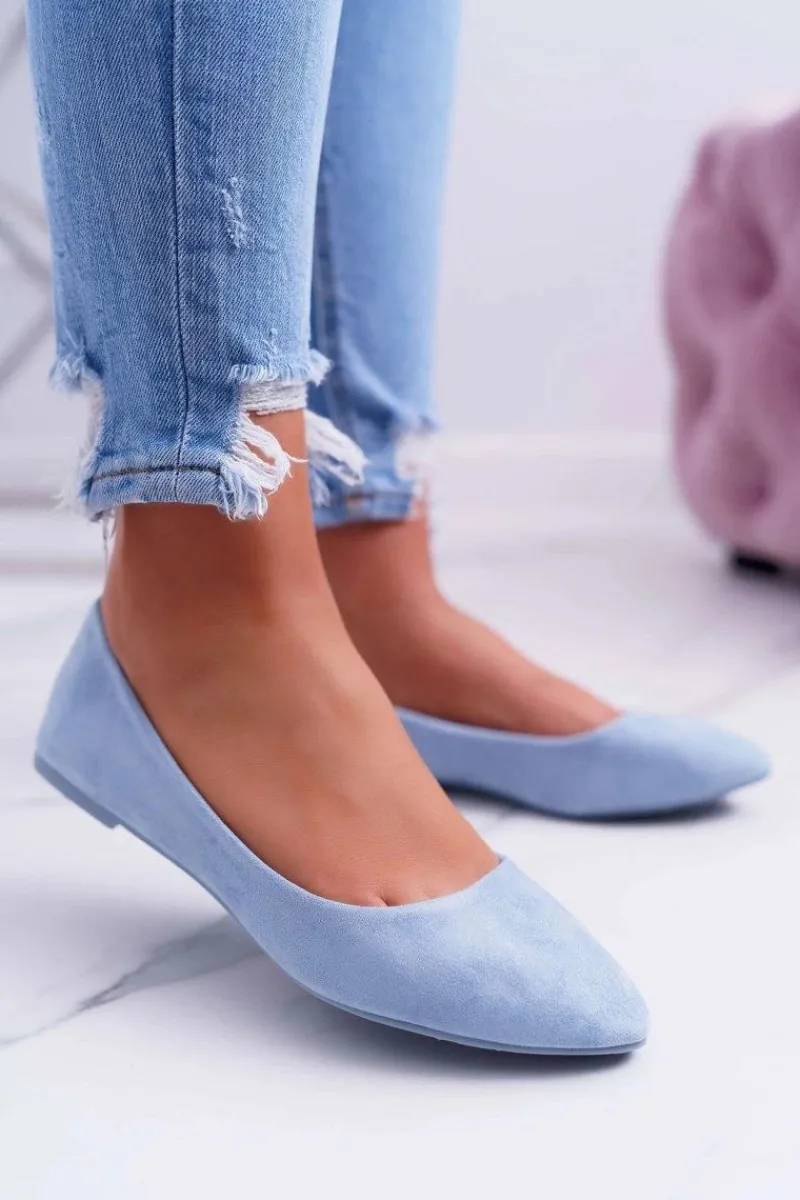 Baleriny Klasyczne>Boto Błękitne Damskie Balerinki Zamsz Bueno