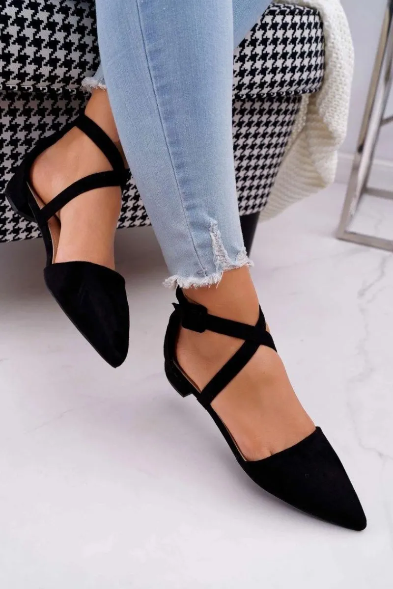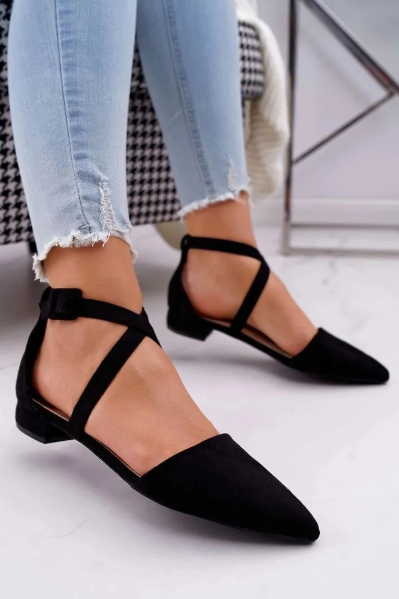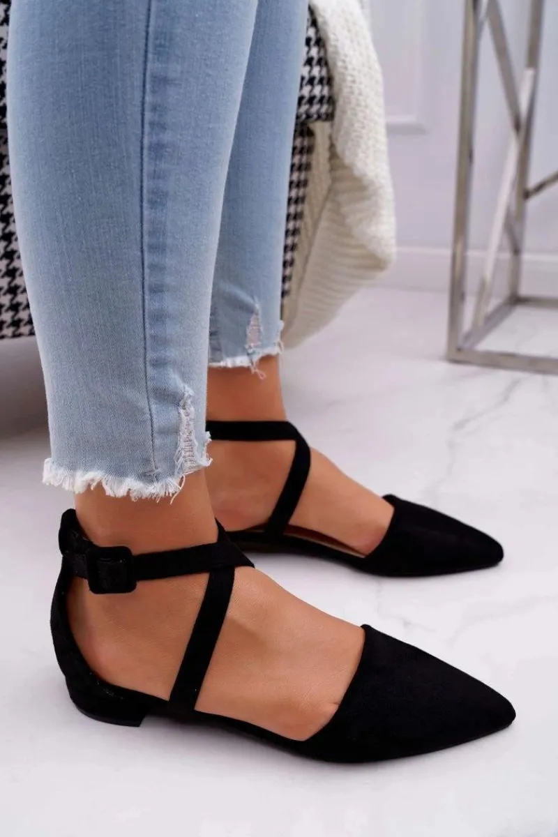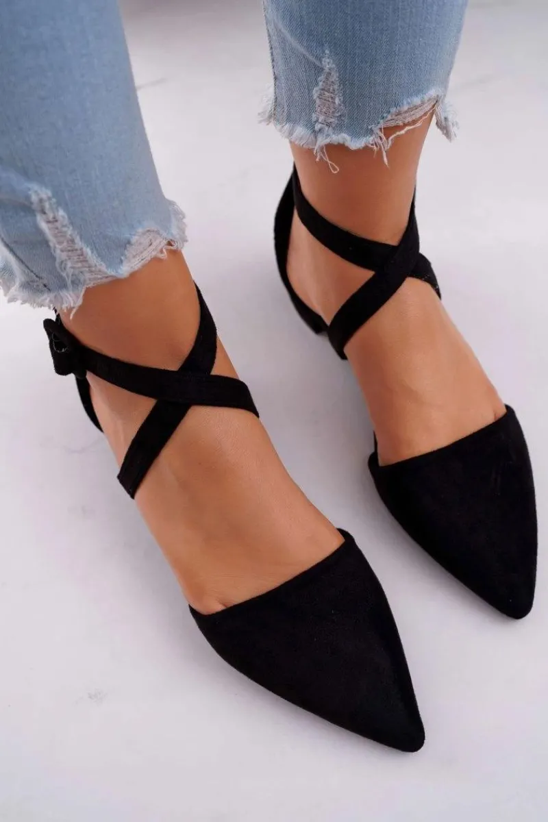 Baleriny Klasyczne>Boto Damskie Balerinki Zamszowe w Szpic Czarne Vontare