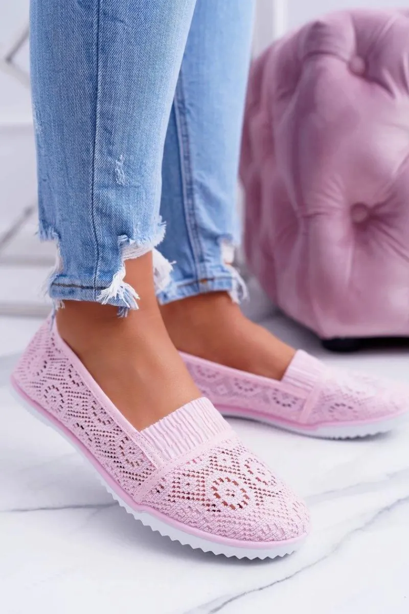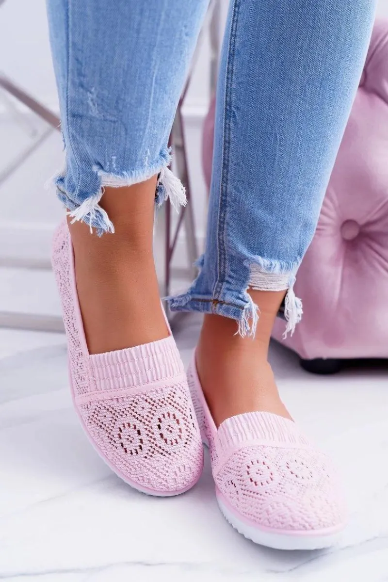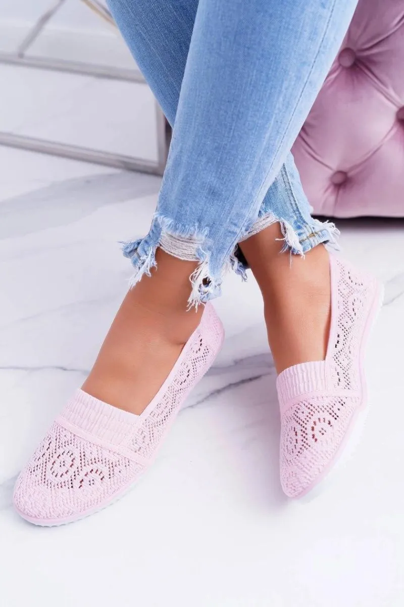 Baleriny Klasyczne>Boto Damskie Koronkowe Balerinki Pudrowy Róż Sensitive