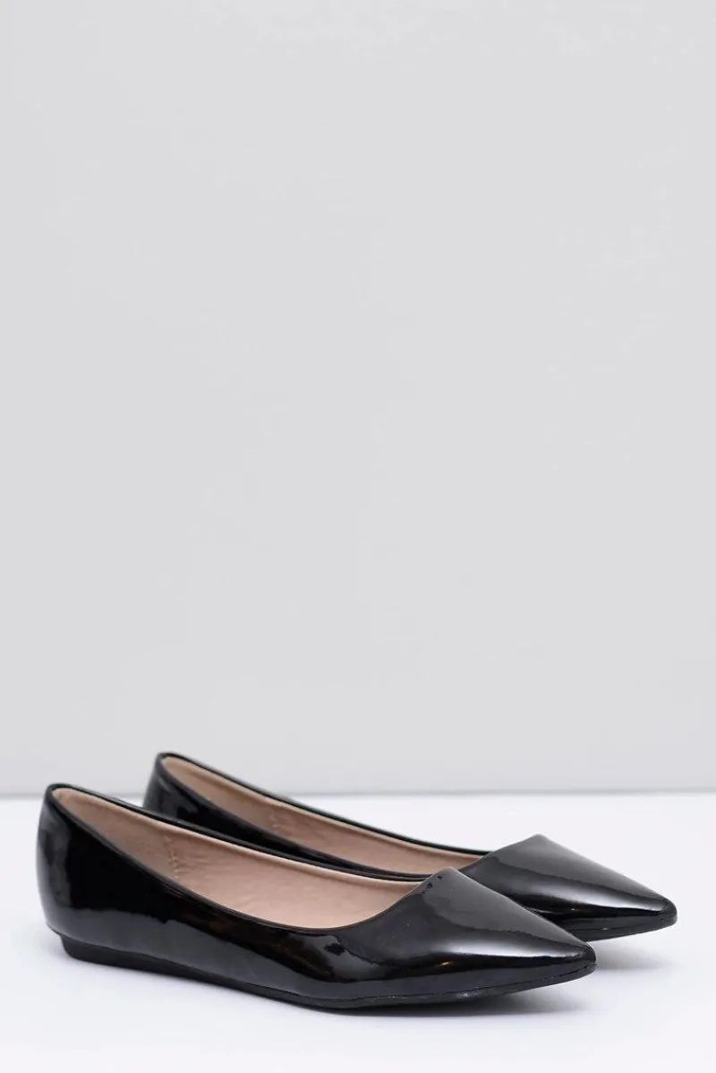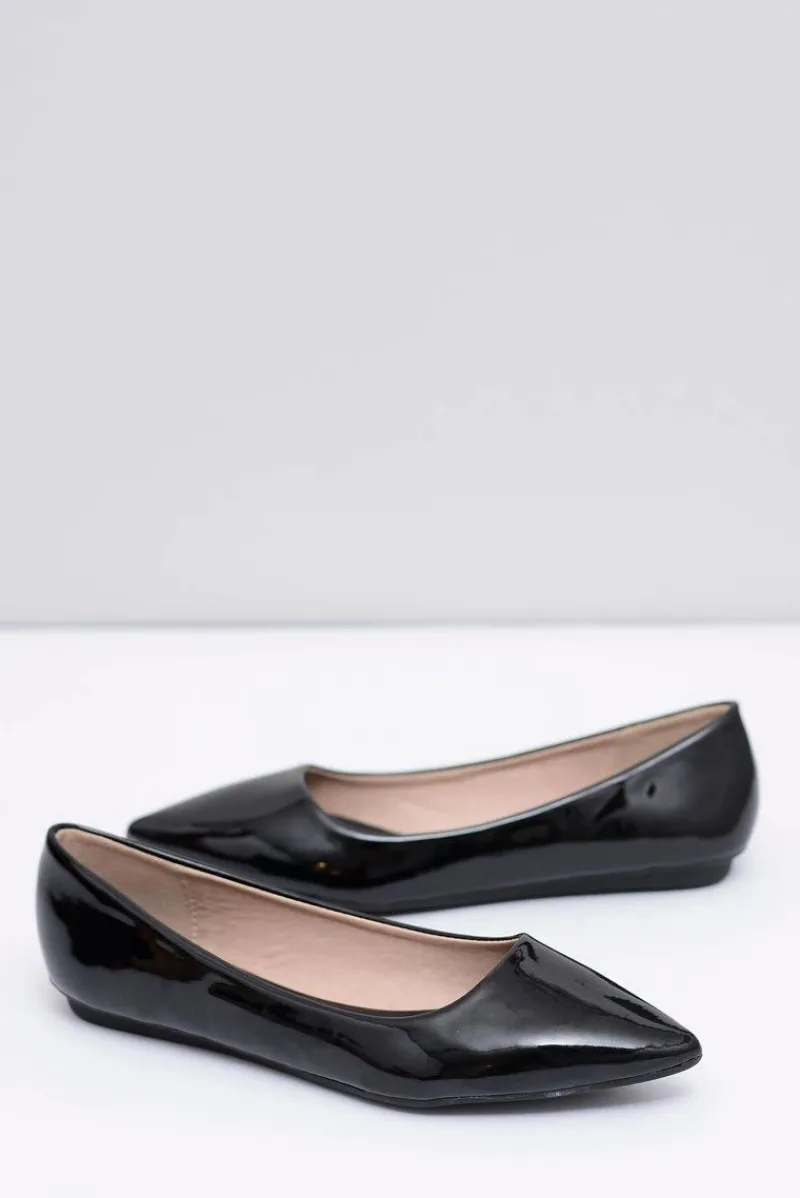 Baleriny Klasyczne>Boto Lakierowane Czarne Balerinki w Szpic Elonde