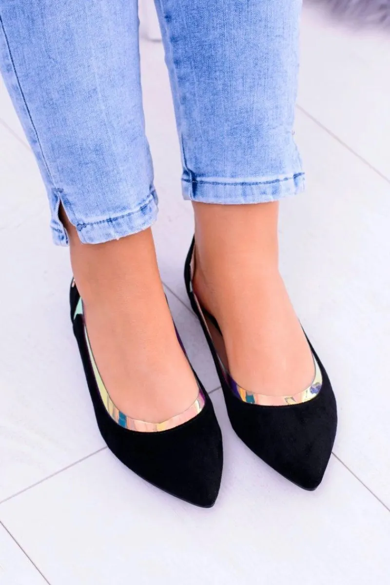 Baleriny Klasyczne>Boto Lu Boo Czarne Transparentne Holograficzne Balerinki w Szpic Lison