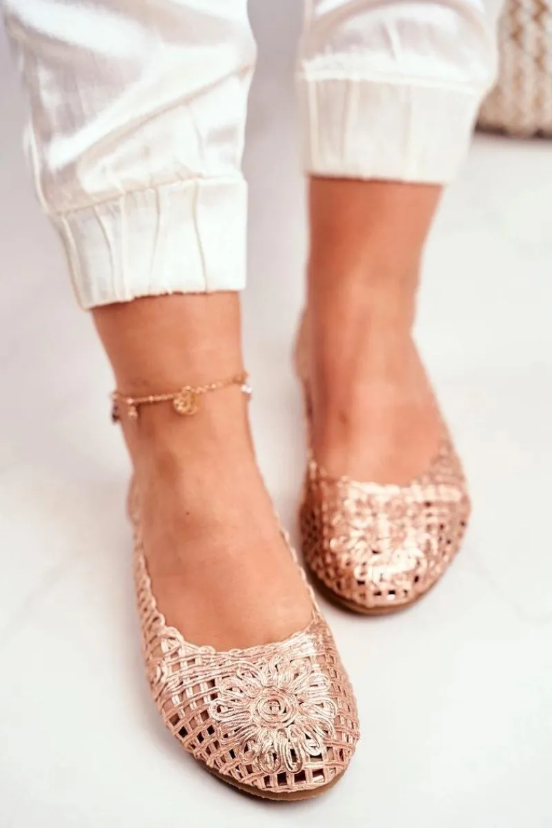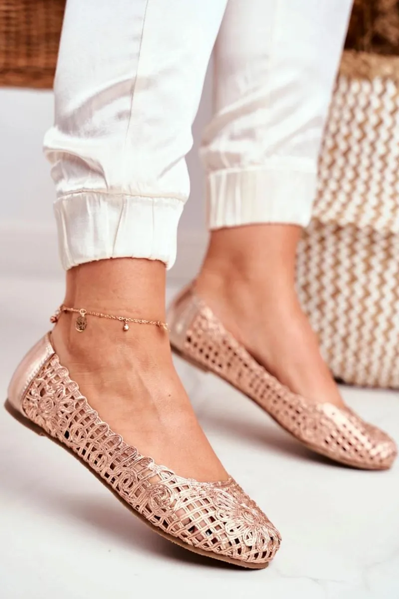 Baleriny Klasyczne>Boto Lu Boo Damskie Baleriny Różowe Złoto Ażurowe Plecione Carry