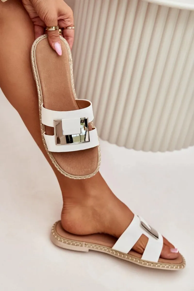 Damskie klapki od marki Artiker stanowią idealny wybór na upalne dni. Umieszczone na płaskim obcasie, gwarantują komfort przez cały dzień. Z przodu znajduje się ozdobny element. Miękka wkładka wykonana z naturalnej skóry gwarantuje wygodę i idealne dopasowanie do stopy. Elegancki fason sprawia, że doskonale pasują do różnych stylizacji, zarówno na co dzień, jak i na bardziej formalne wyjścia. Przy wyborze rozmiaru prosimy sugerować się tabelą rozmiarów.