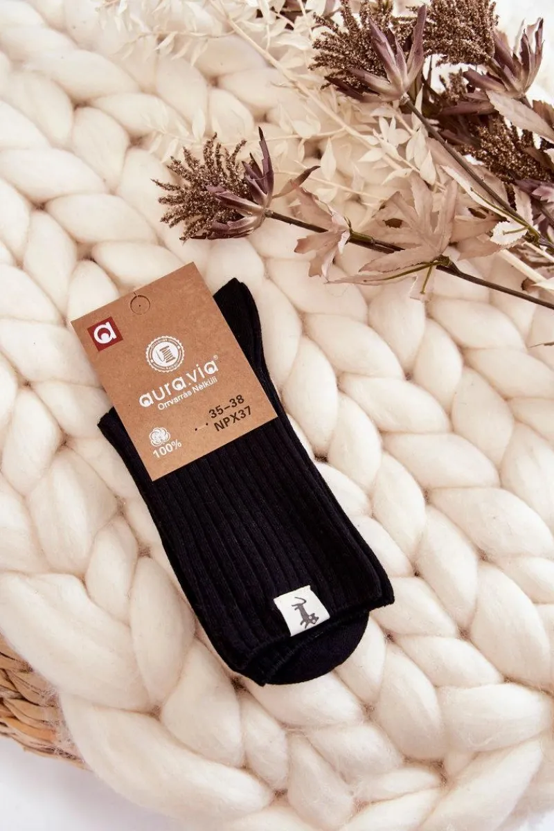 Damskie, bawełniane skarpetki zostały wykonane z wysokiej jakości materiału w prążkowany wzór. Uniwersalne, wygodne, a zarazem wytrzymałe. Wykonane w dwóch grupach rozmiarowych. Niewielka zawartość elastanu powoduje odpowiednie dopasowanie do nogi. Model za kostkę. Skarpetki te są dodatkowo bezuciskowe.