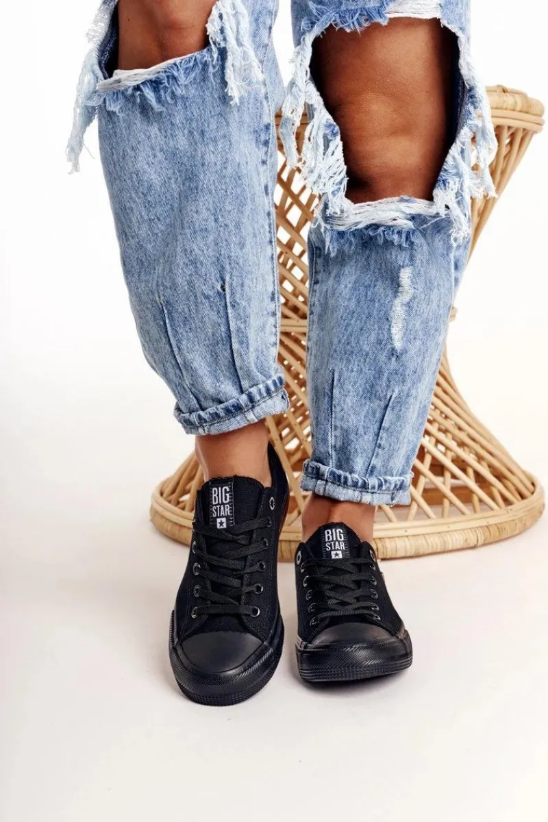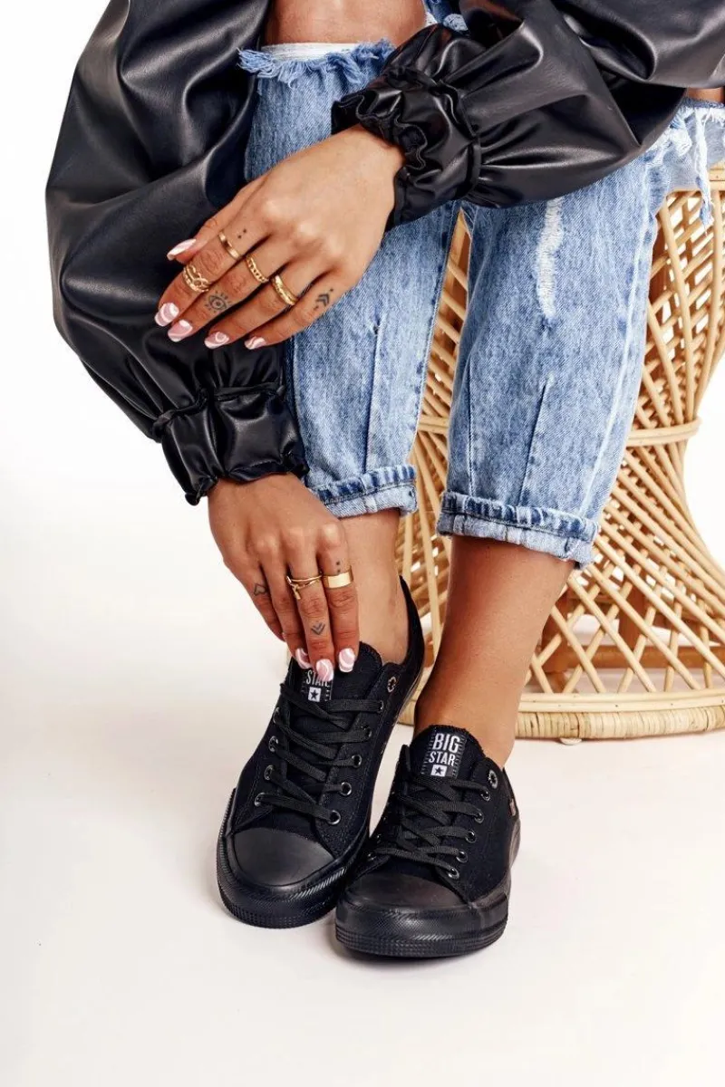 Damskie trampki polskiej marki BIG STAR to klasyczna forma i modny kolor. Kultowe już trampki pasują do wielu stylizacji. Buty dobrze dopasowują się do kształtu stopy, posiadają miękką, materiałową wkładkę. Ponadczasowy wzór dostępny jest w wielu kolorach. Koniecznie sprawdź całą naszą kolekcję butów BIG STAR. Przy wyborze rozmiaru prosimy sugerować się tabelą rozmiarów.