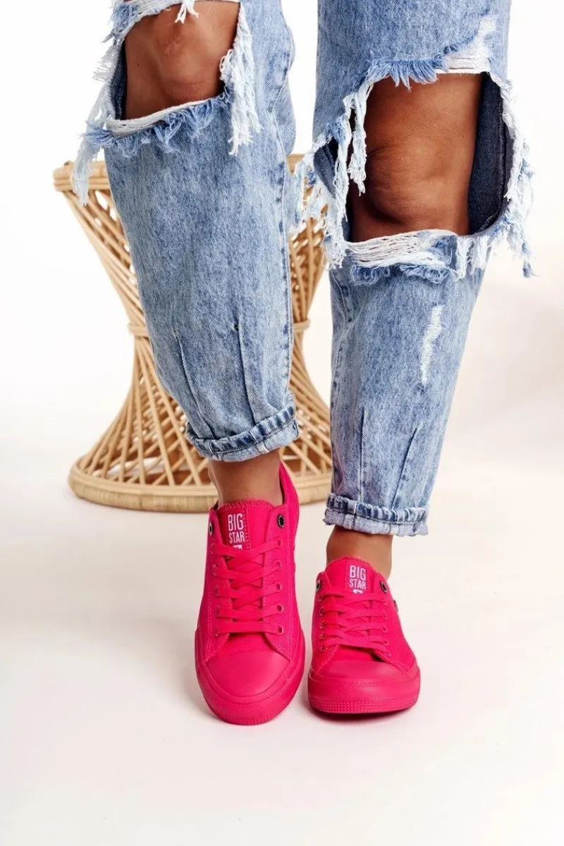 Damskie trampki polskiej marki BIG STAR to klasyczna forma i modny kolor. Kultowe już trampki pasują do wielu stylizacji. Buty dobrze dopasowują się do kształtu stopy, posiadają miękką, materiałową wkładkę. Ponadczasowy wzór dostępny jest w wielu kolorach. Koniecznie sprawdź całą naszą kolekcję butów BIG STAR. Przy wyborze rozmiaru prosimy sugerować się tabelą rozmiarów.