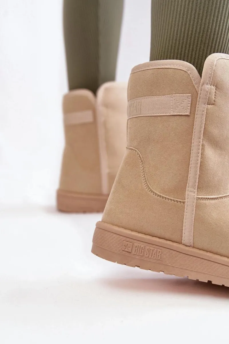 Idealne śniegowce na mroźne dni od marki Big Star! Wykonane z miłego w dotyku materiału tekstylnego. Posiadają platformę, która świetnie odizoluje od podłoża. Śniegowce zostały ocieplone miękkim futerkiem. Nieregularna cholewka świetnie wpasuje się w stylizacje ze spodniami. Dodatkowo z tyłu cholewki znajduje się ozdobny pasek z logo marki Big Star. Przy wyborze rozmiaru prosimy sugerować się tabelą rozmiarów.