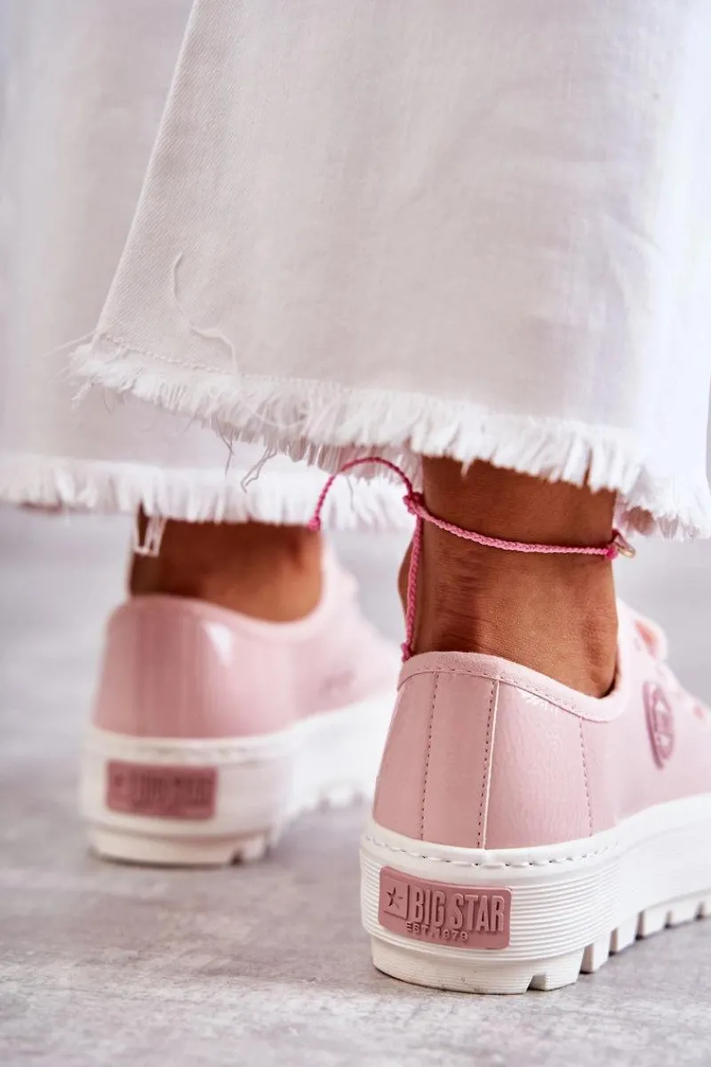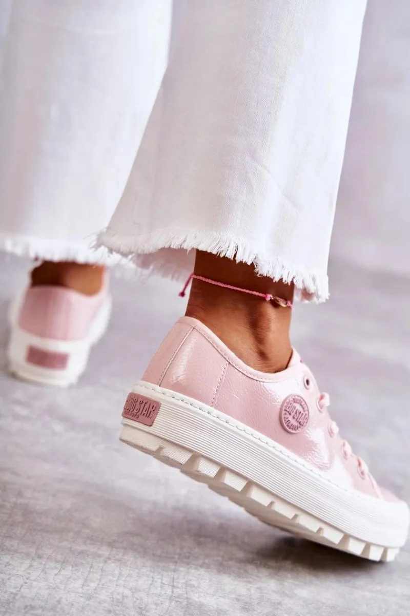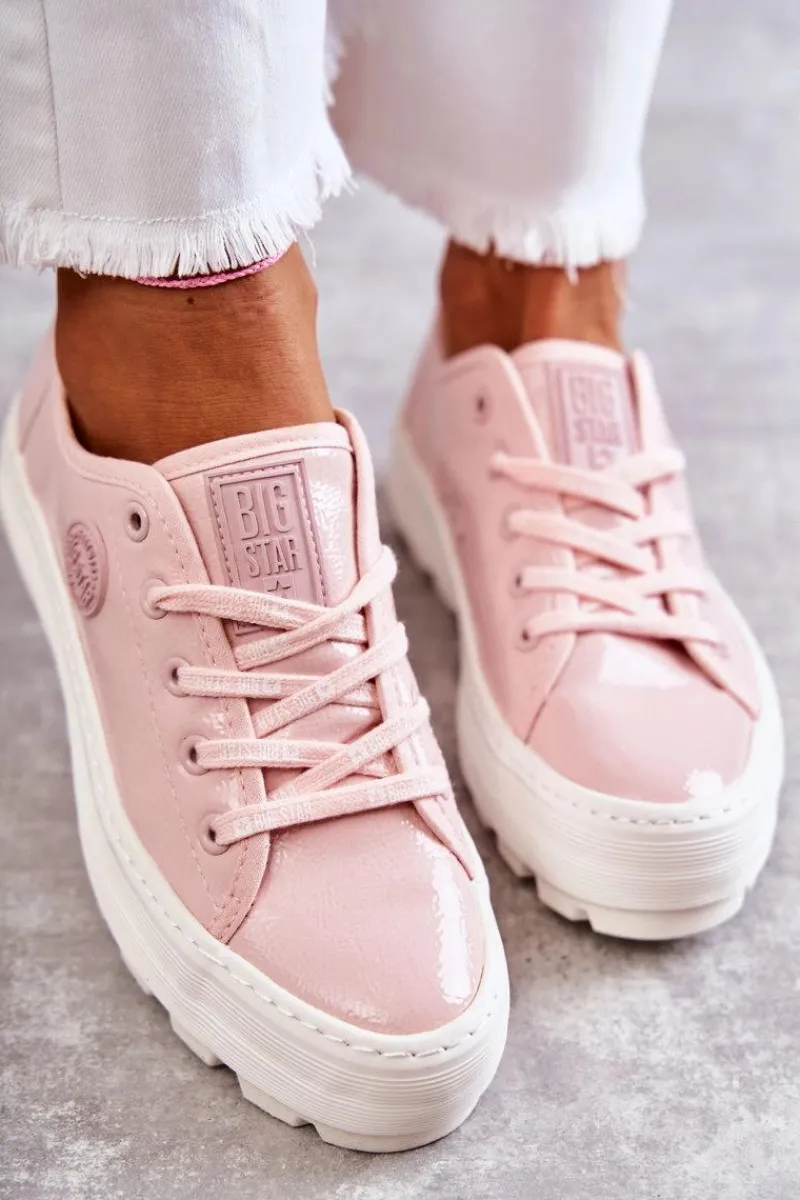 Rewelacyjne trampki od marki Big Star! Nowoczesny design oraz podeszwa z wysokim bieżnikiem wyróżnia ten model spośród innych! Z boku cholewki znajduje się gumowy emblemat. Trampki te dodatkowo posiadają logowane sznurowadła. Podeszwa antypoślizgowa zapewni stabilność. Model ten posiada także usztywniany zapiętek. Koniecznie powinnaś je mieć w swojej garderobie! Przy wyborze rozmiaru prosimy sugerować się tabelą rozmiarów.