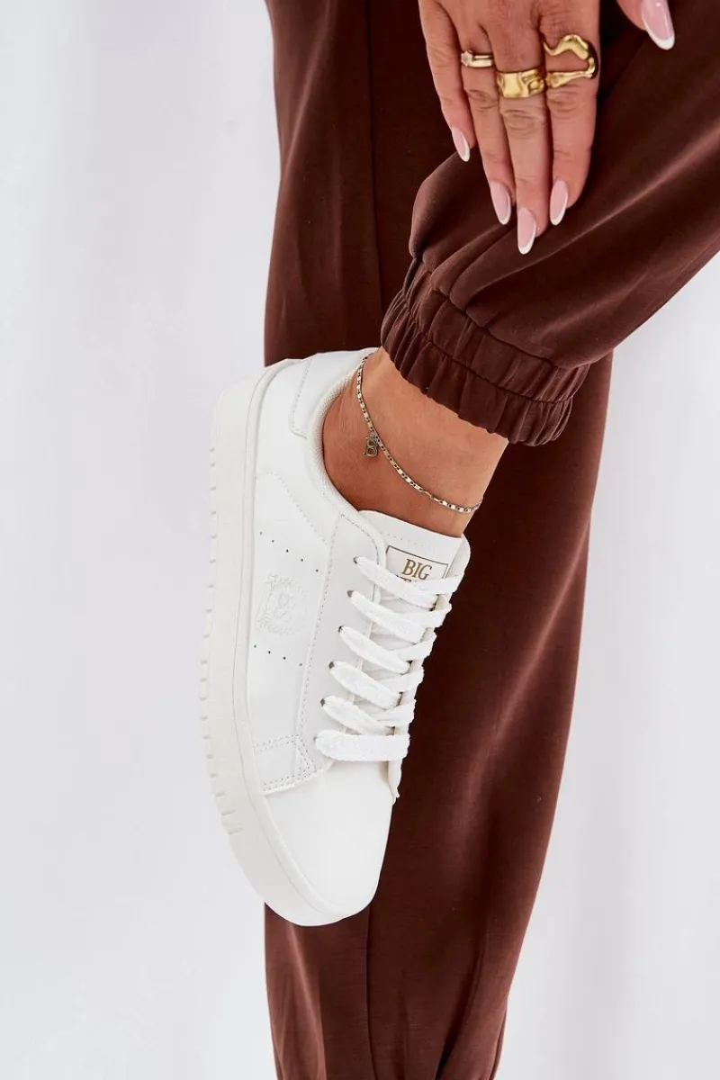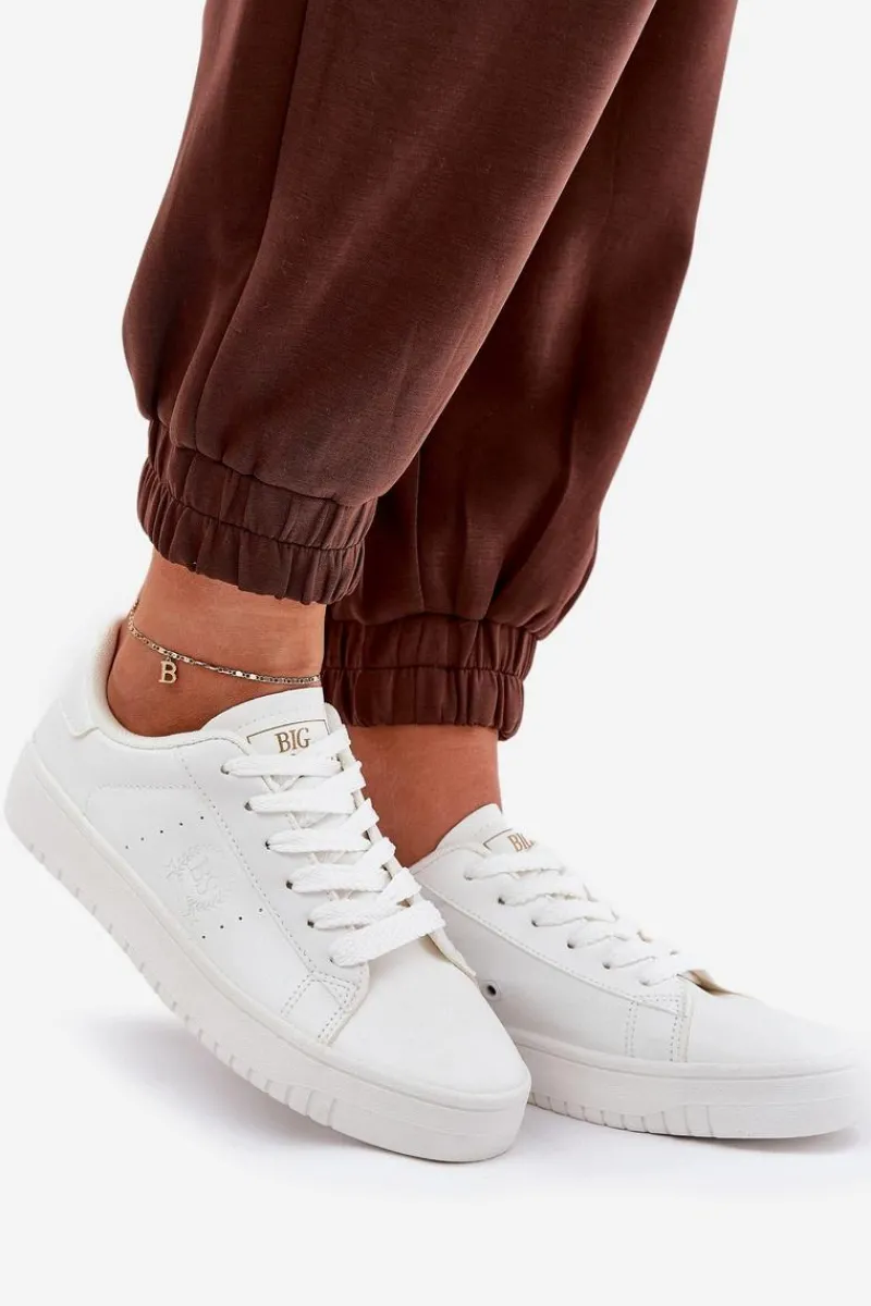 Trampki damskie od Big Star to doskonała propozycja dla kobiet ceniących komfort i styl. Wykonane z eko skóry, zapewniają trwałość i łatwość w pielęgnacji. Gumowa podeszwa gwarantuje wygodę i dobrą przyczepność, sprawiając, że te trampki będą świetnym wyborem na co dzień. Idealne do casualowych stylizacji, łączą modny wygląd z funkcjonalnością.Przy wyborze rozmiaru prosimy sugerować się poniższą tabelą rozmiarów.