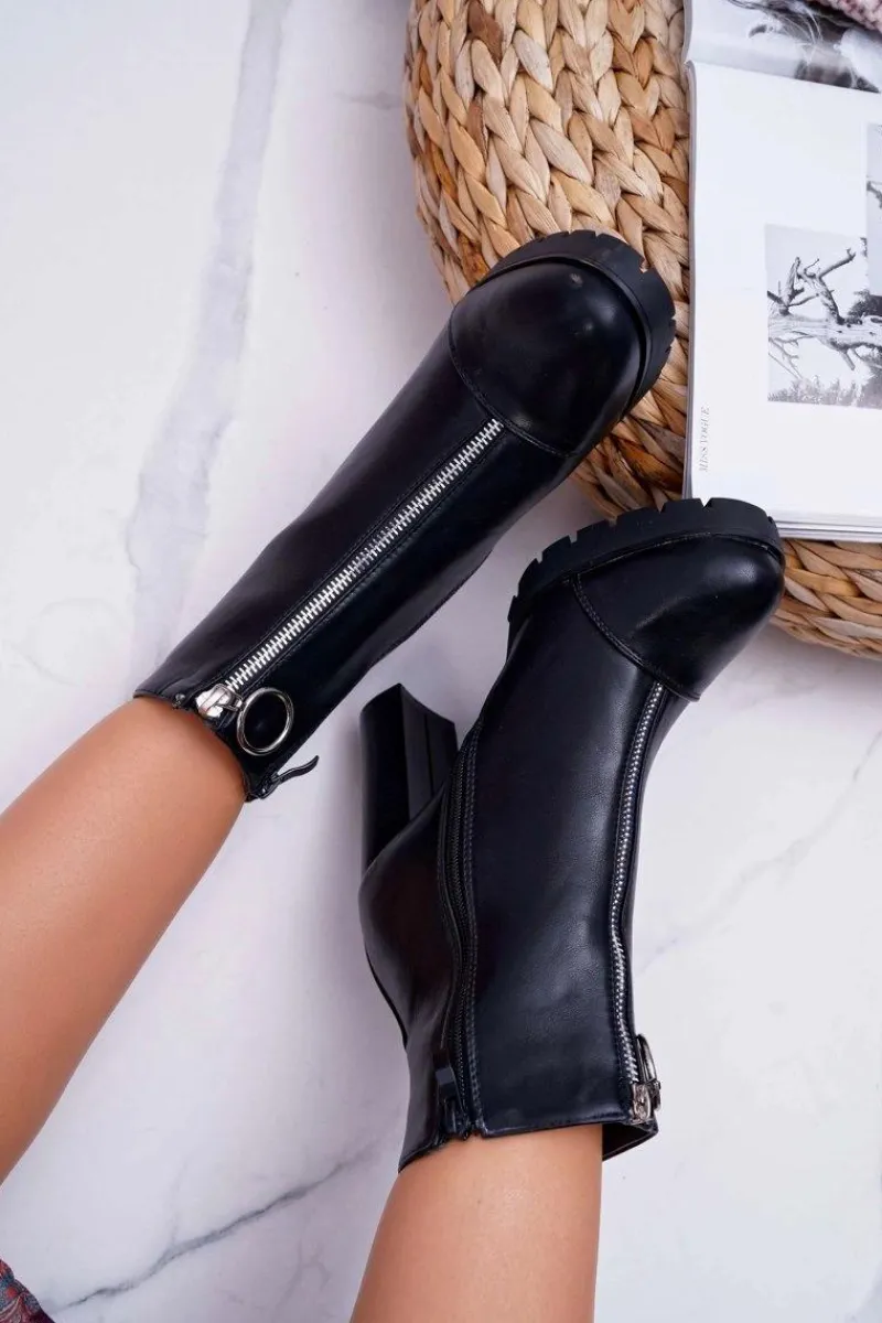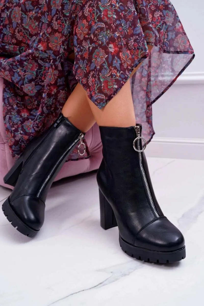Buty powinny być modne oraz praktyczne, a takie właśnie są nasze botki. Delikatny słupek, który uniesie naszą sylwetkę podkreślając przy tym figurę. Wnętrze pokryte miłym w dotyku kocem obuwniczym z krótkim włosiem. Cholewka zdobiona jest srebrnym suwakiem. Botki zapinane są na dodatkowy suwak na boku. Przy wyborze rozmiaru prosimy sugerować się tabelą rozmiarów.