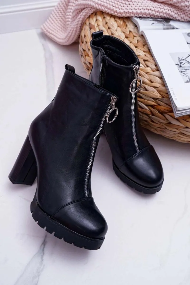 Best Botki Damskie Na Słupku Ozdobny Suwak Czarne Senuto Damskie Botki Na Słupku|Botki Zimowe Damskie
