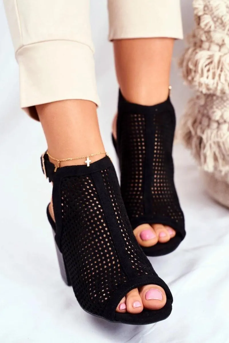 Best Boto Botki Damskie Ażurowe Peep Toe Czarne Paradise