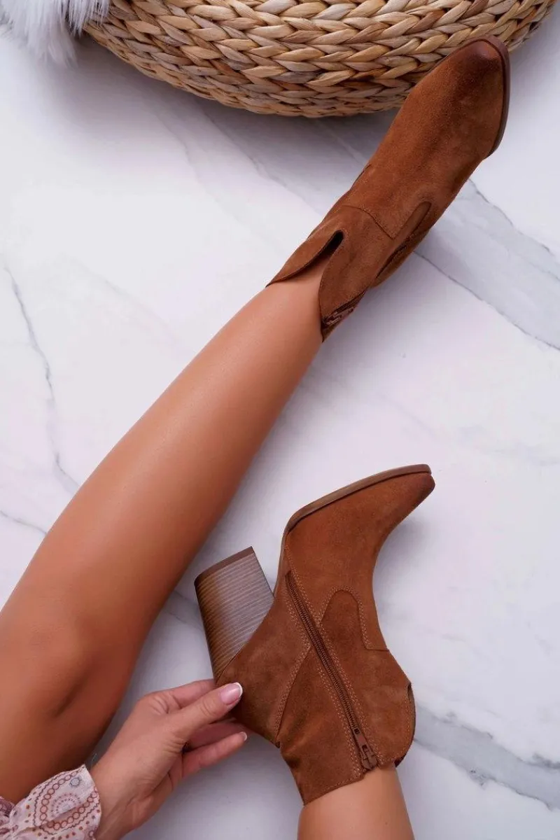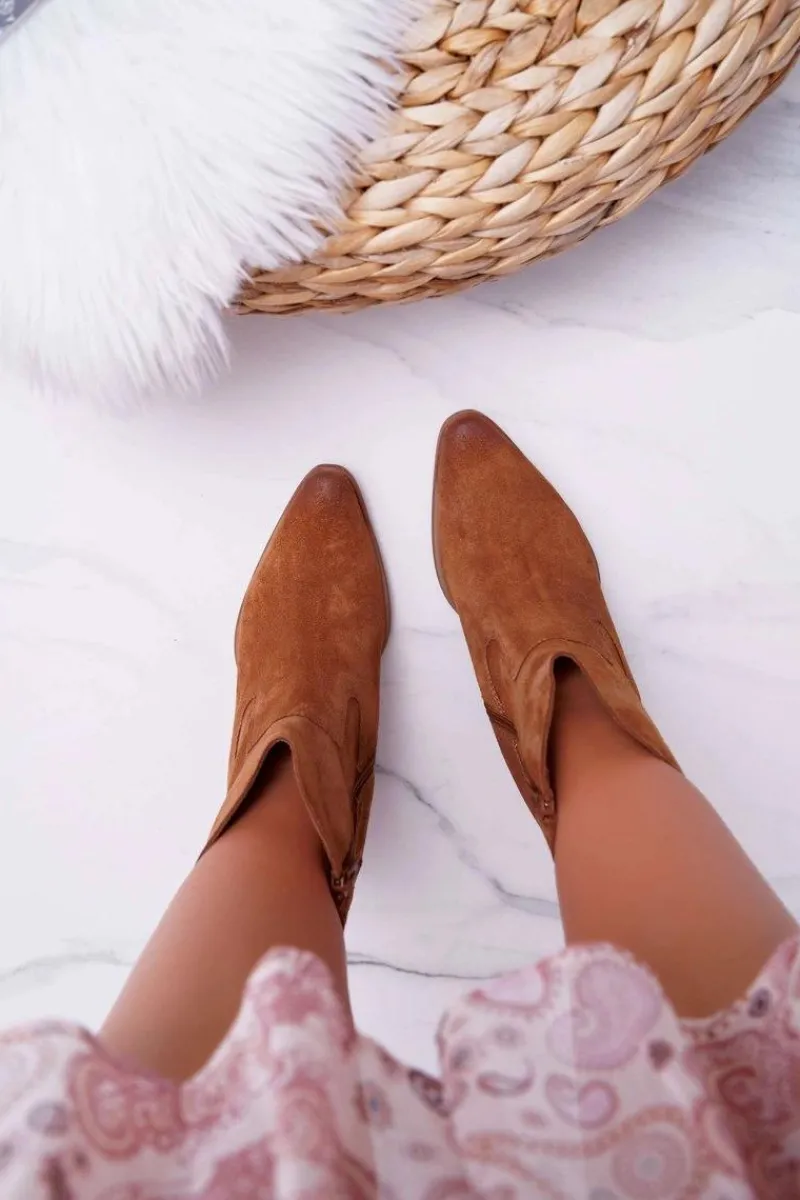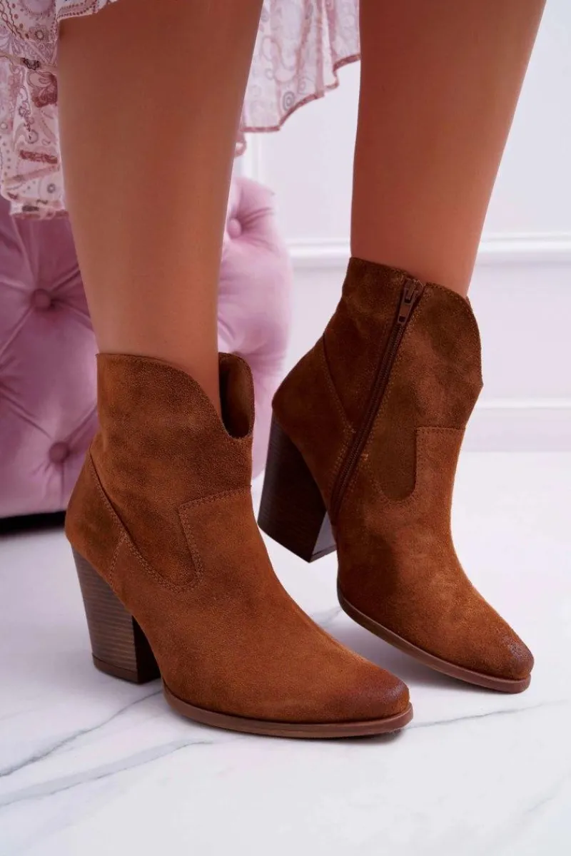 Best Boto Botki Damskie Na Obcasie Skóra Zamsz Koniak Nicole 2433