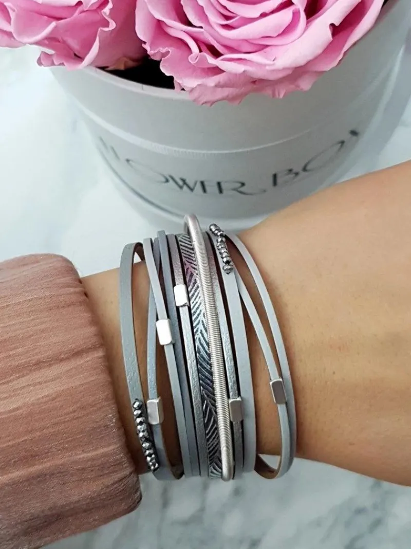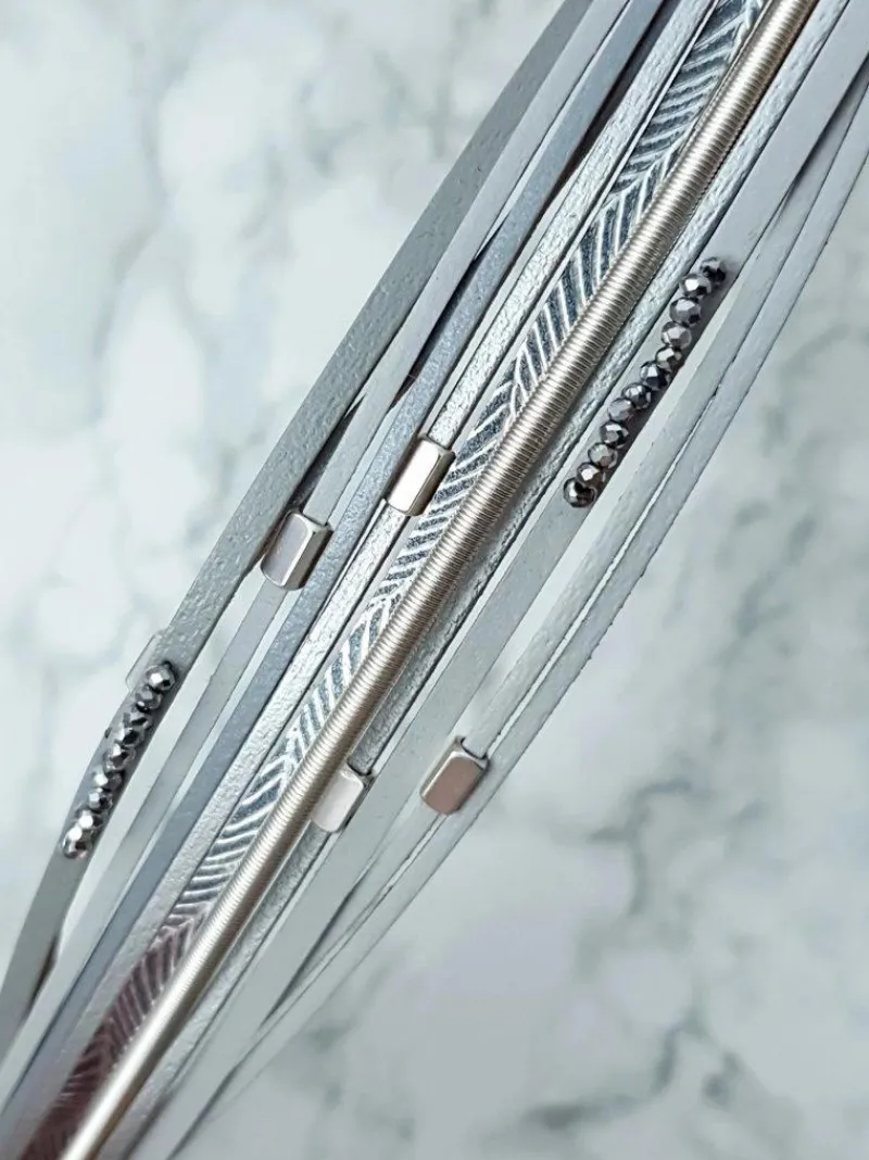 My kobiety kochamy błyskotki. Każda stylizacja potrzebuje dodatków, a nawet te najmniejsze są bardzo ważne. Mowa tu o pięknej biżuterii, która podkreśli to co najlepsze. Wspaniała rzemieniowa bransoletka z zapinaniem na magnes. Model został wykonany z wysokiej jakości skóry ekologicznej. Modny wzór na który każda z nas zwróci uwagę. Sprawdź całą naszą kolekcję biżuterii i wybierz swój ulubiony dodatek.