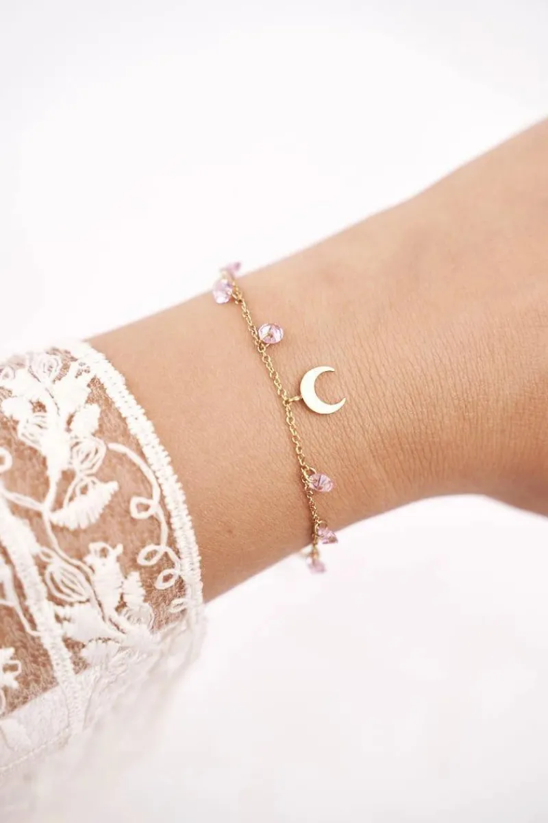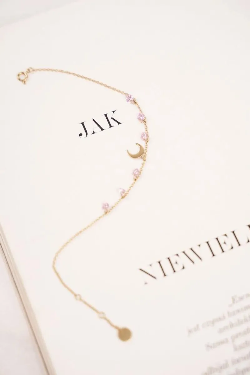 Best Boto Damska Bransoletka Celebrytka Złota Księżyc Różowe Cyrkonie Chloë