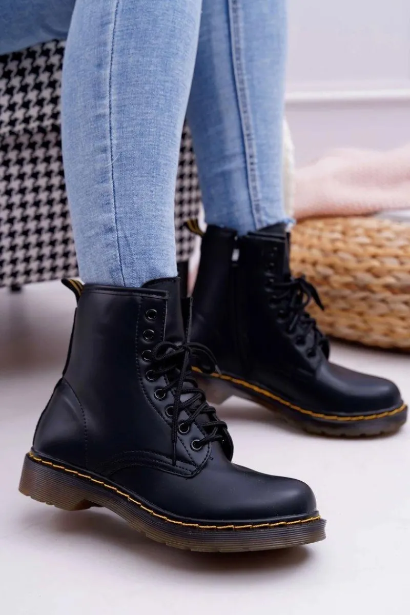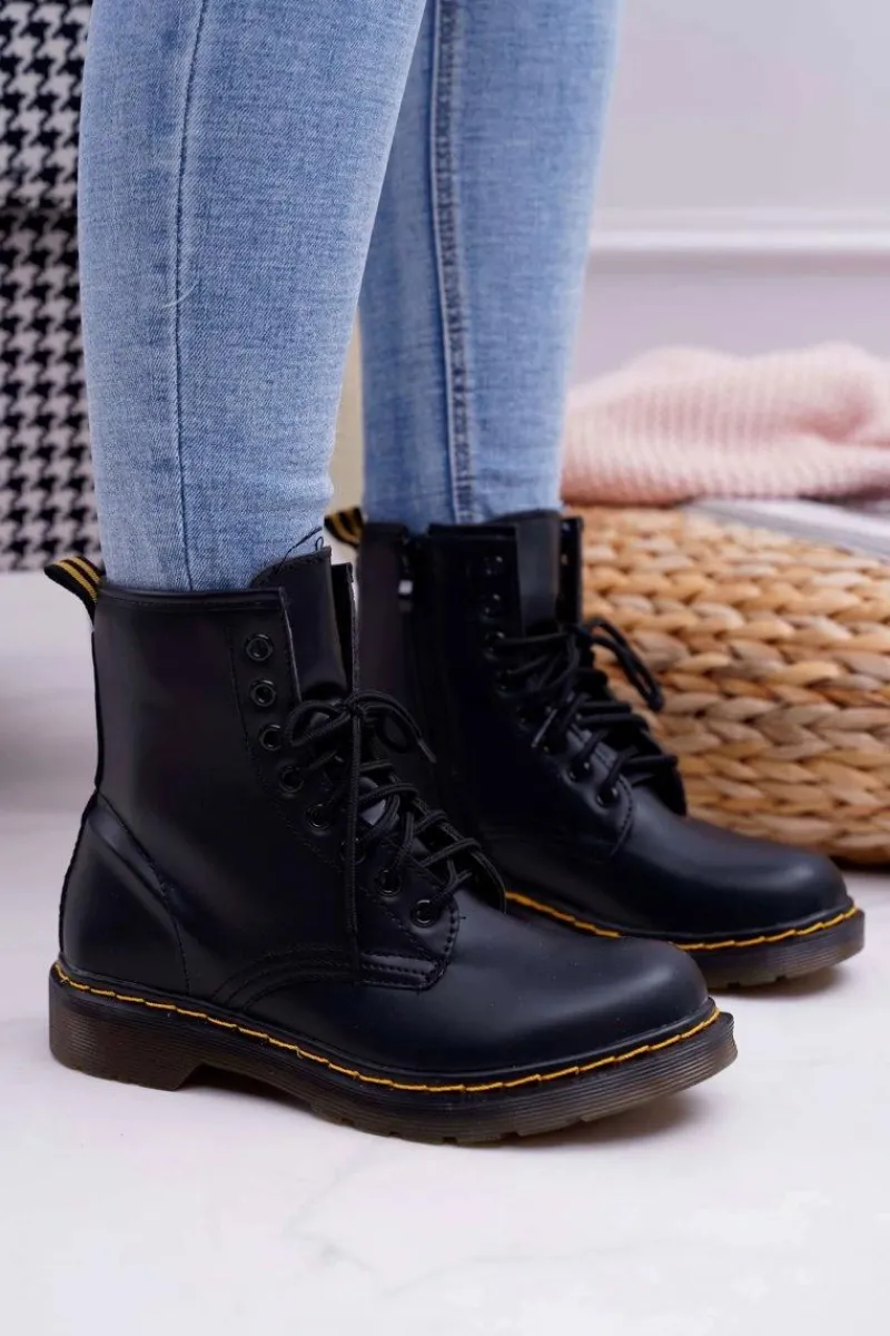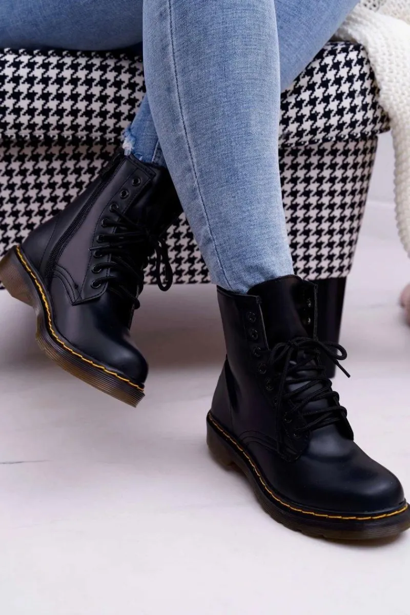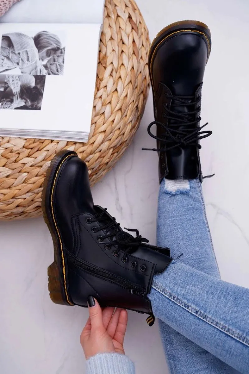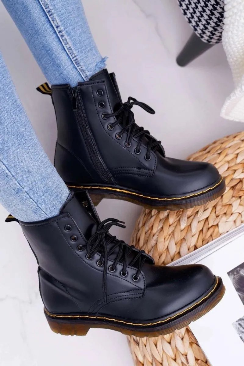 Best Boto Damskie Botki Trapery Glany Czarne Gangsta