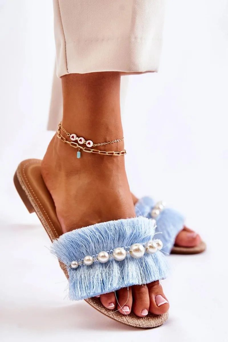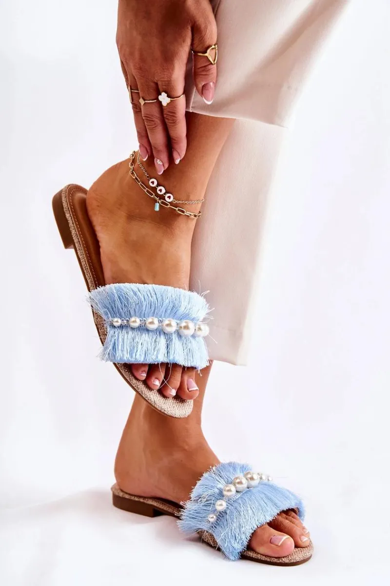 Klasyczne klapki damskie zostały wykonane z materiału tekstylnego. Posiadają ozdobny pasek z imitacją pereł. Miękka wkładka wykonana z eko skóry zapewni komfort podczas użytkowania. Buty zostały osadzone na płaskim obcasie i antypoślizgowej podeszwie. Świetny model, który sprawdzi się podczas upalnych dni! Nosek odkryty, lekko zaokrąglony. Koniecznie powinnaś je mieć w swojej szafie! Przy wyborze rozmiaru prosimy sugerować się tabelą rozmiarów.