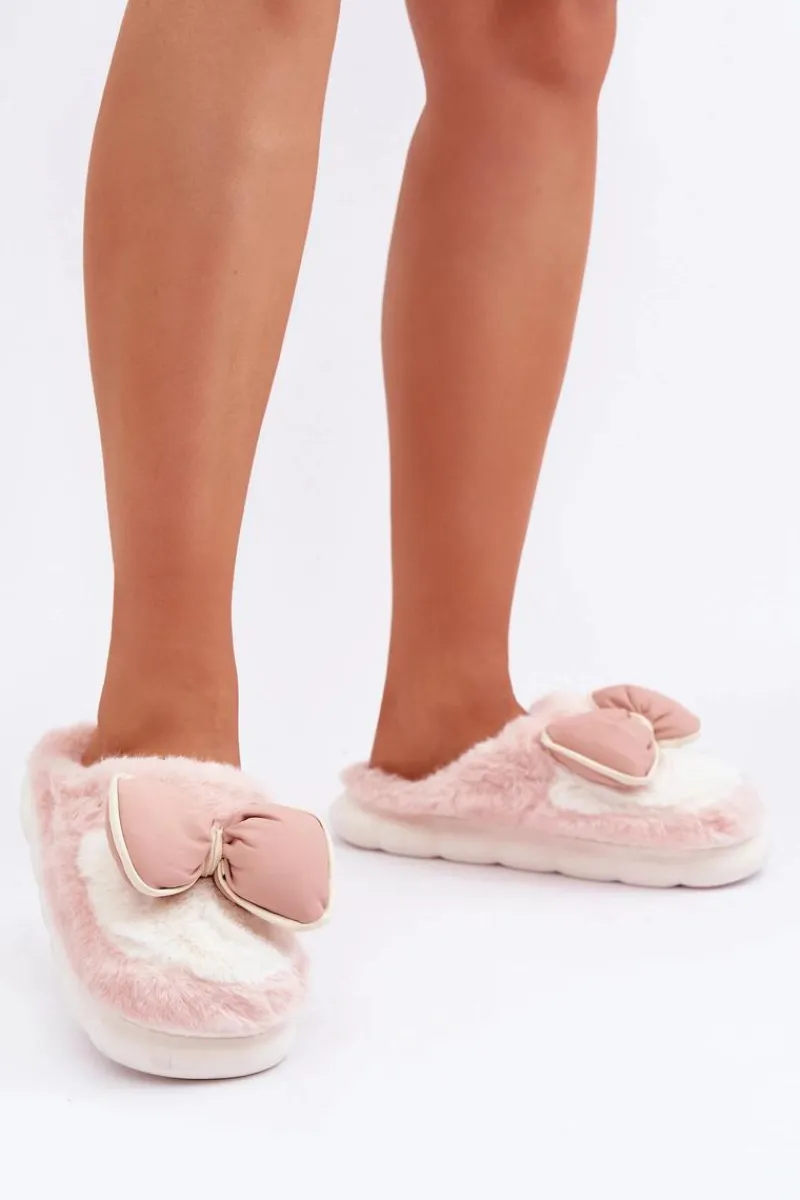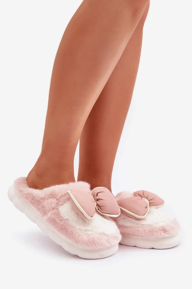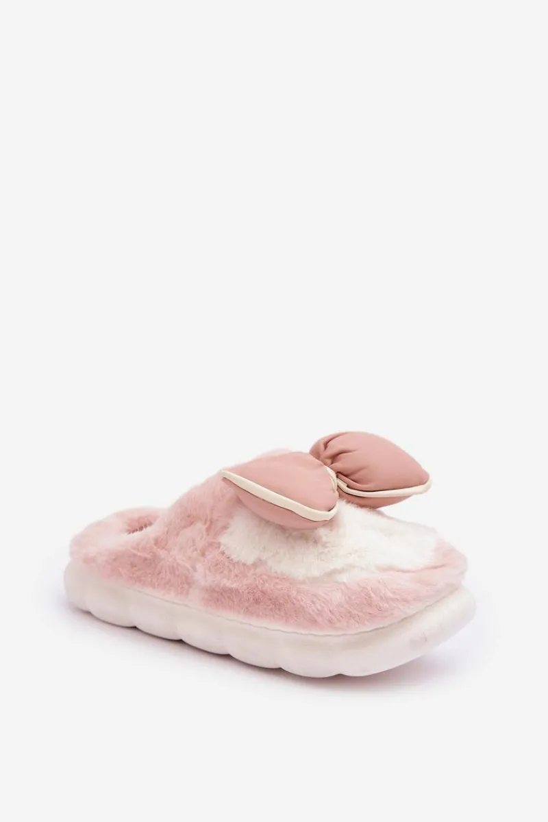 Kapcie damskie wykonane z miękkiego, przytulnego futerka, idealnie otulają stopy, zapewniając ciepło i komfort. Model osadzony na grubszej podeszwie, co dodaje stabilności i izoluje od chłodnego podłoża. Zakryte noski zapewniają dodatkową ochronę przed zimnem, czyniąc kapcie idealnym wyborem na chłodne dni. Przód ozdobiony kokardką, która nadaje wyjątkowego uroku. Stylowe i praktyczne! Przy wyborze rozmiaru prosimy sugerować się tabelą rozmiarów.