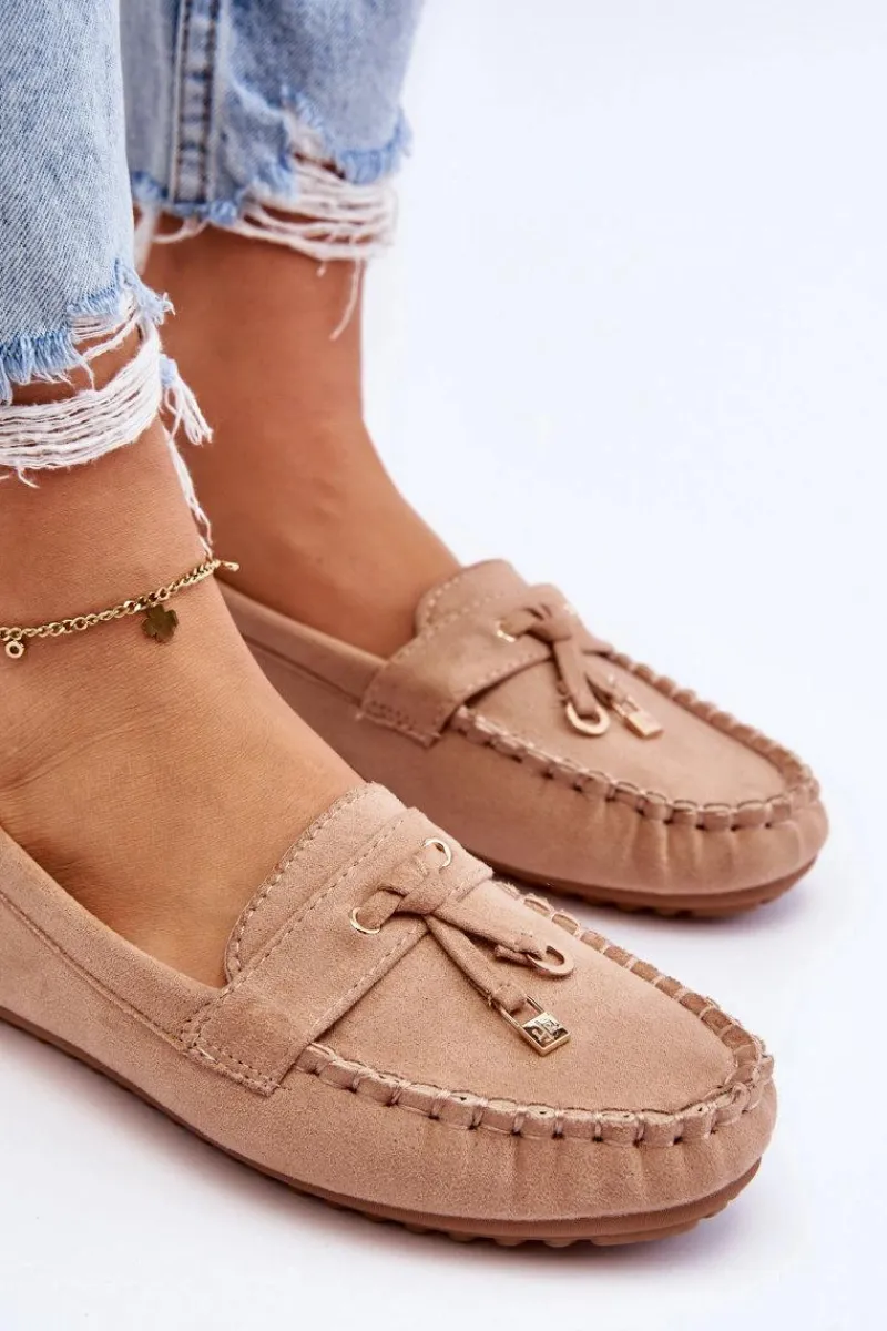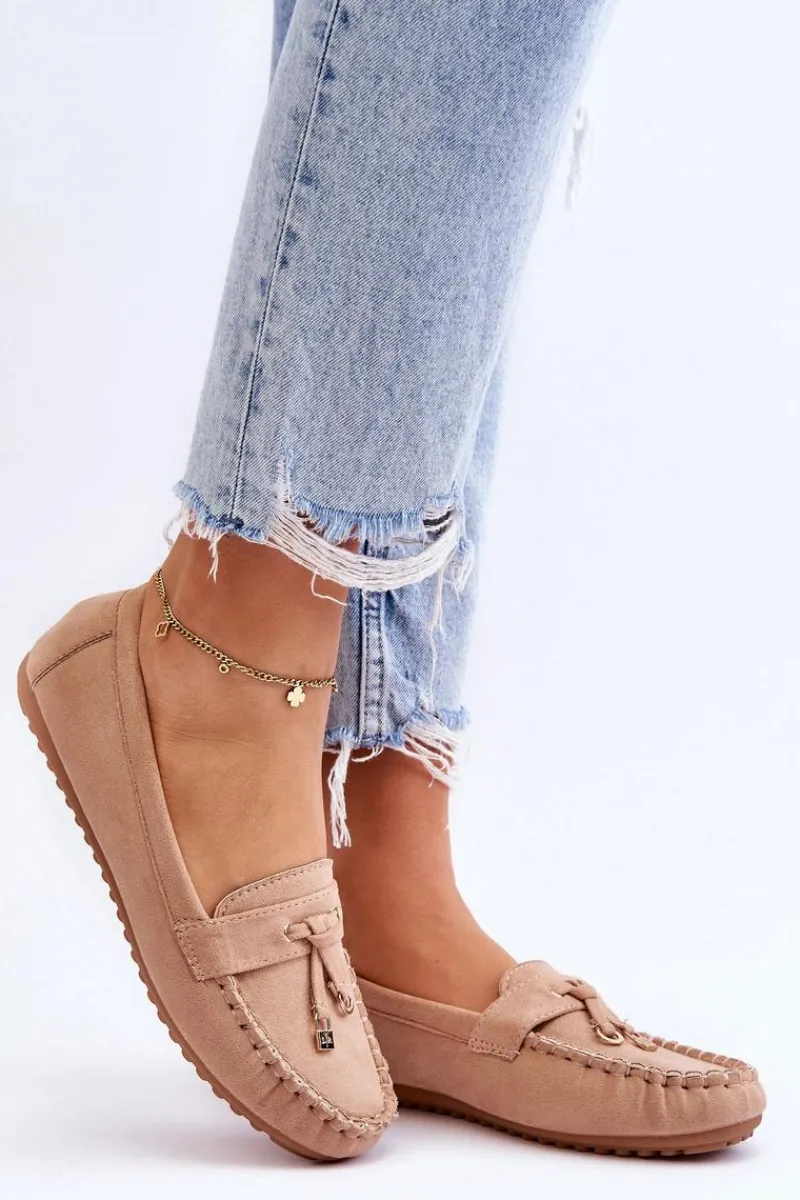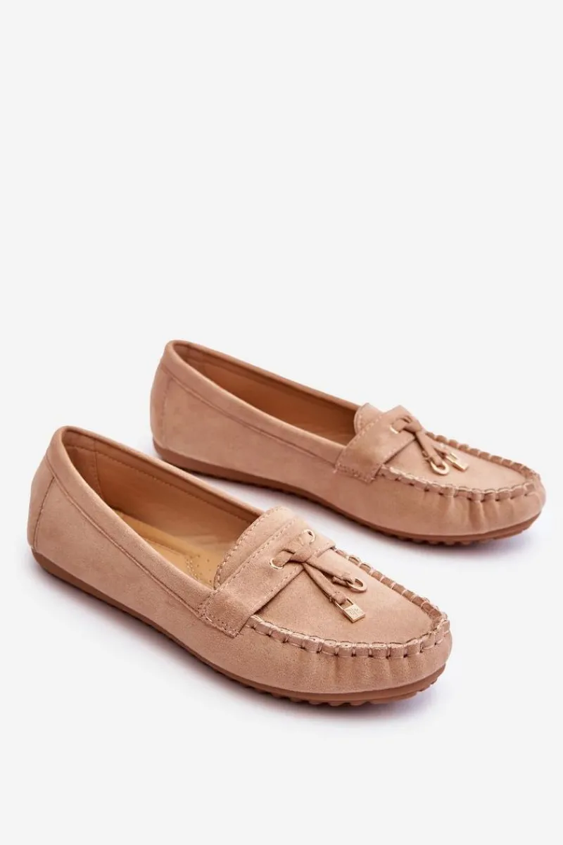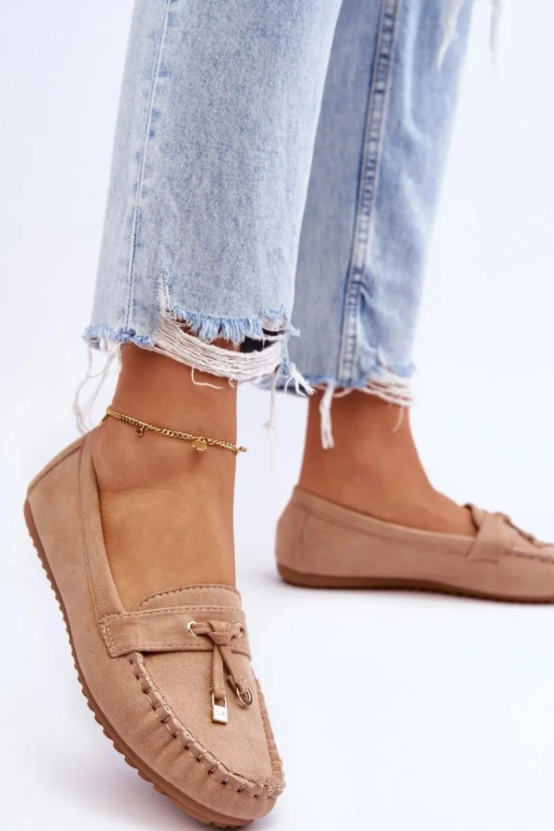 Klasyczne mokasyny damskie zostały wykonane z eko zamszu. Model ten posiada na przodzie ozdobne paseczki z kłódką i kółeczkiem. Mokasyny osadzono na delikatnej platformie. Miękka wkładka zapewni komfort podczas użytkowania obuwia. Model ten posiada lekko zaokrąglony nosek. Idealne do wielu stylizacji w sezonie wiosenno-jesiennym! Przy wyborze rozmiaru prosimy sugerować się tabelą rozmiarów.
