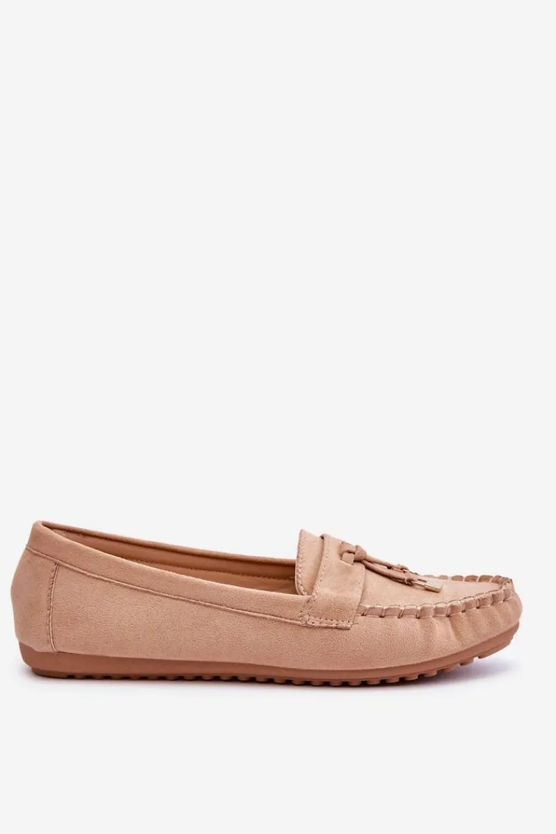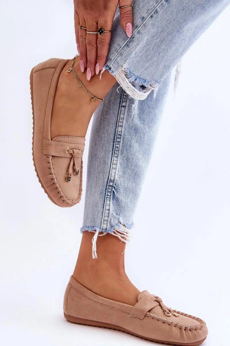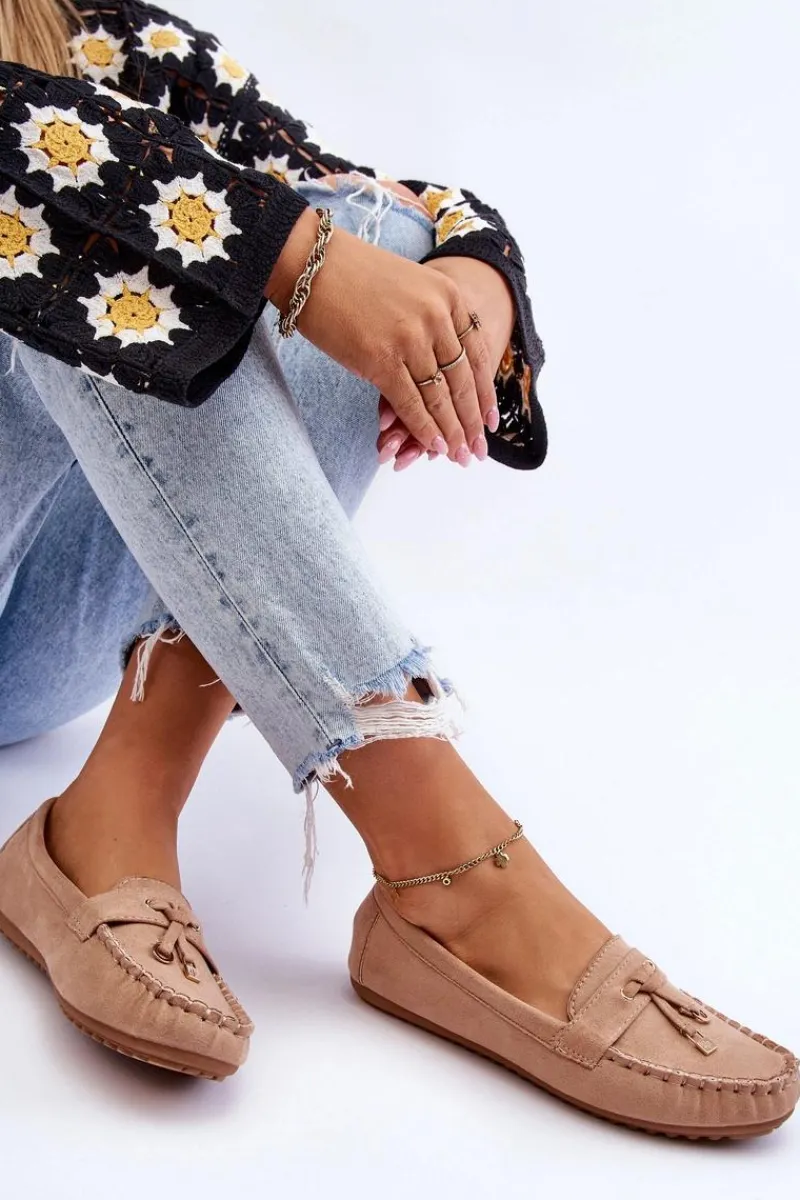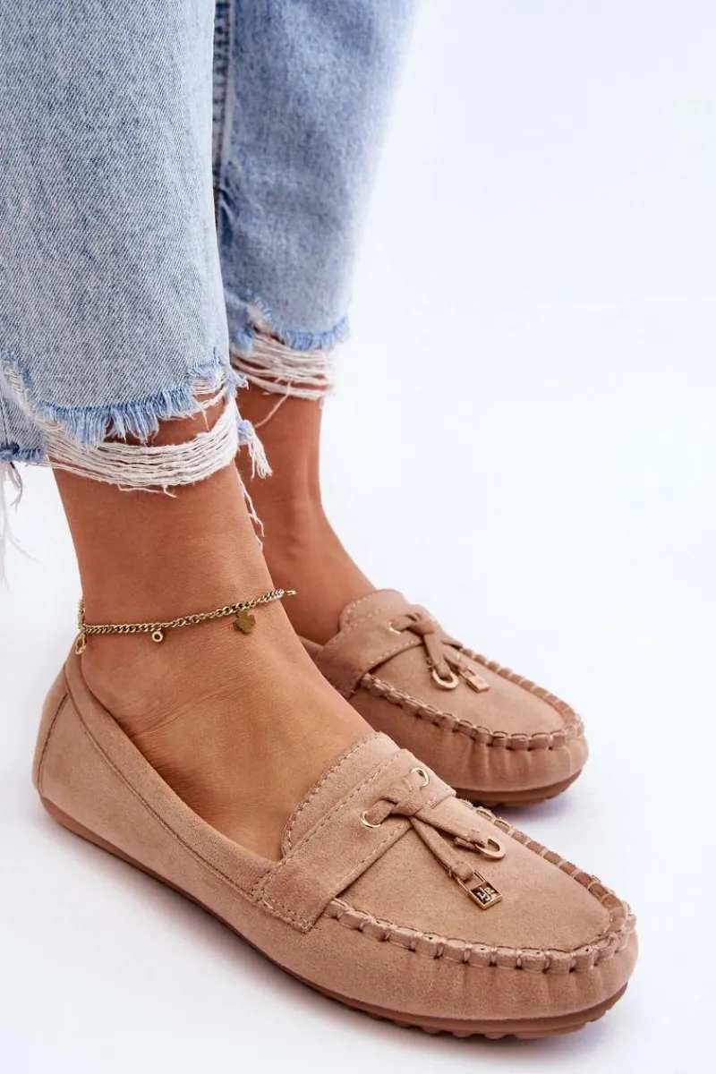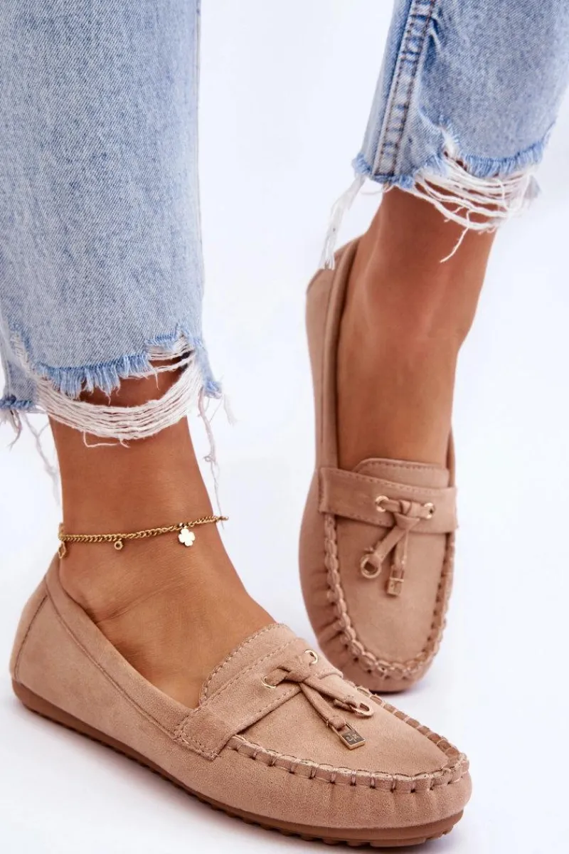 Klasyczne mokasyny damskie zostały wykonane z eko zamszu. Model ten posiada na przodzie ozdobne paseczki z kłódką i kółeczkiem. Mokasyny osadzono na delikatnej platformie. Miękka wkładka zapewni komfort podczas użytkowania obuwia. Model ten posiada lekko zaokrąglony nosek. Idealne do wielu stylizacji w sezonie wiosenno-jesiennym! Przy wyborze rozmiaru prosimy sugerować się tabelą rozmiarów.