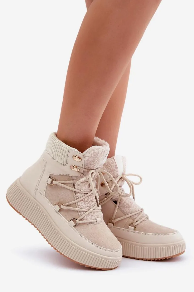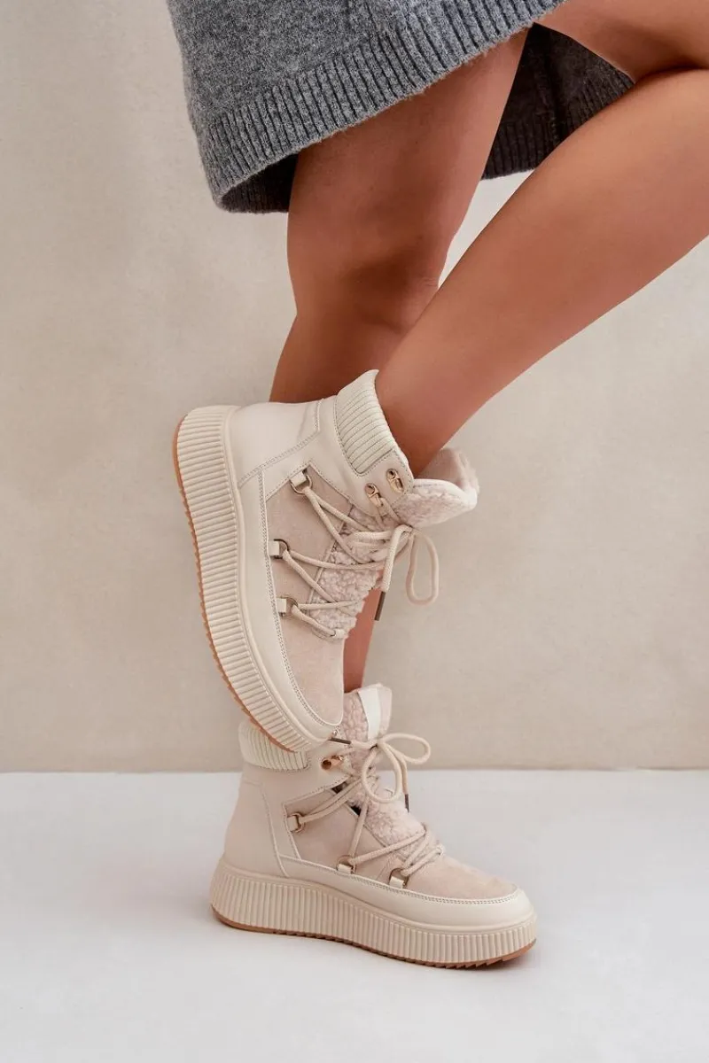 Niskie śniegowce na platformie to idealne obuwie na zimowe dni. Model wyróżnia się językiem ozdobionym miękkim futerkiem typu baranek, które nadaje mu przytulny i stylowy wygląd. Środek ocieplany kocem obuwniczym. Sznurowanie z dodatkowymi haczykami pozwala na precyzyjne dopasowanie butów do stopy. Funkcjonalne, modne i komfortowe – doskonałe na zimowe spacery i codzienne stylizacje. Przy wyborze rozmiaru prosimy sugerować się tabelą rozmiarów.
