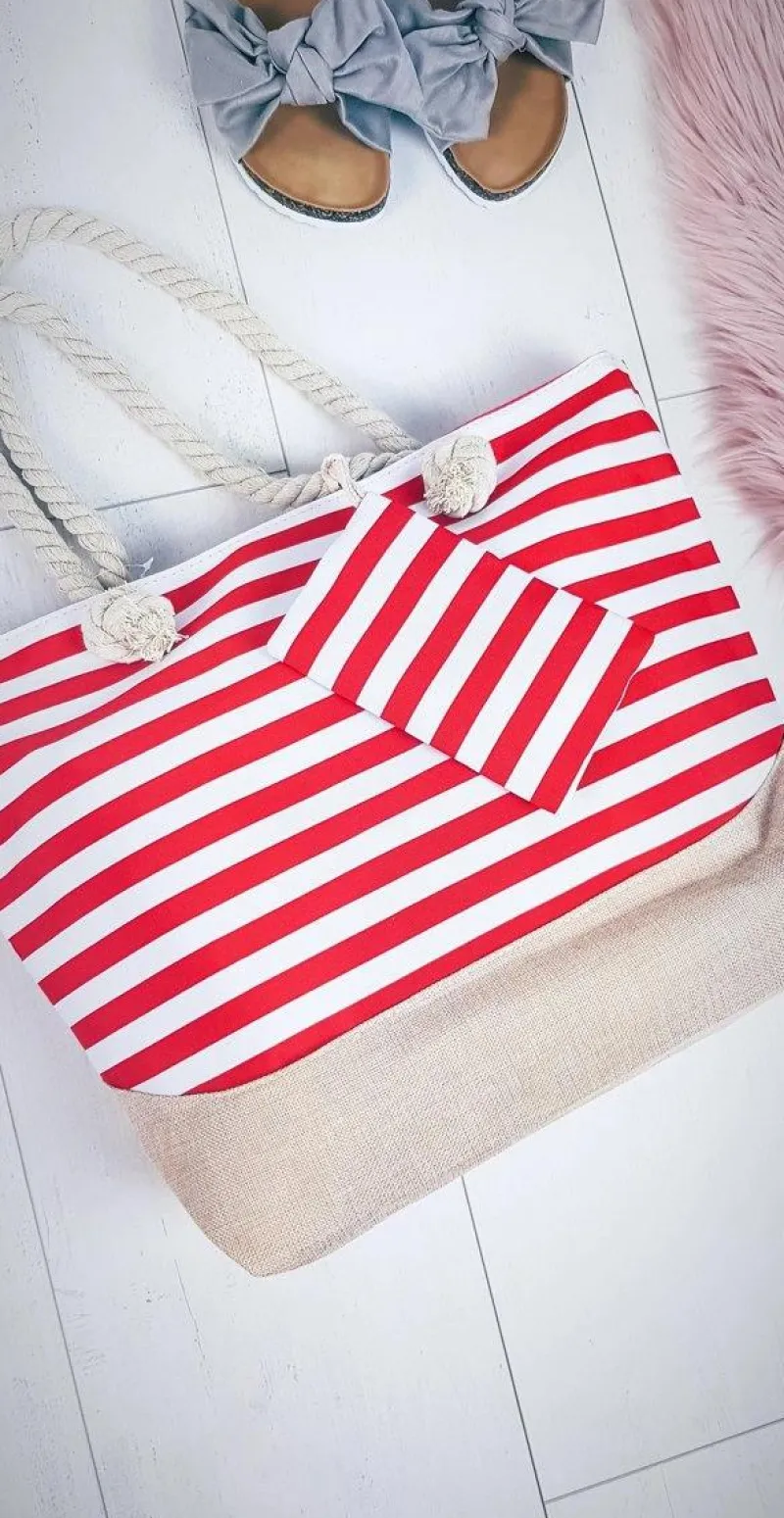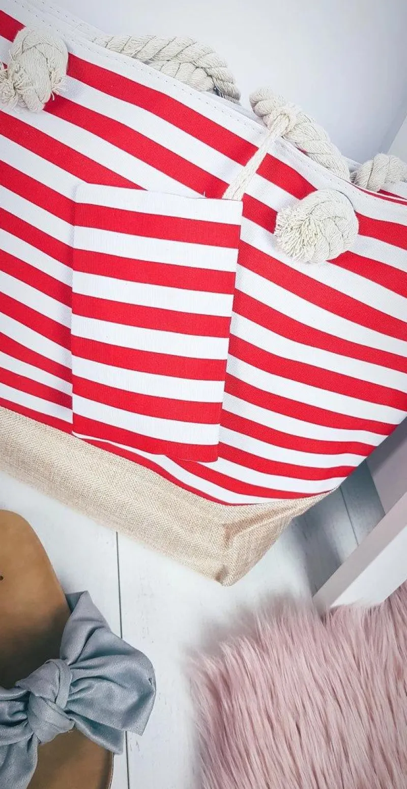 Best Boto Plażowa Duża Czerwona Torebka Torba Damska Marynarska