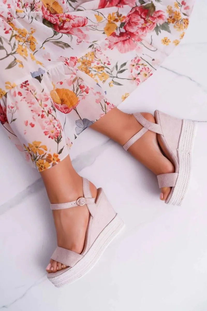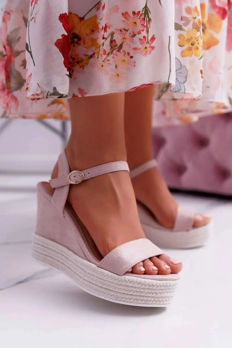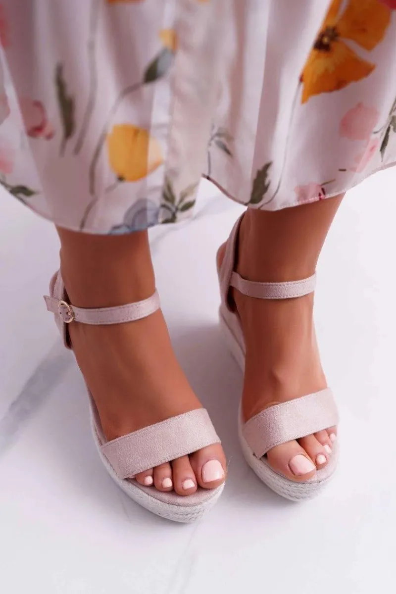 Mega wygodne sandały na koturnie. Wierch to wysokogatunkowy eko-zamsz, dostępny w kilku cudownych kolorach. Stabilny koturn oraz 4cm platforma zdobiona plecionym sznurkiem. Uzupełnij swoje stylizacje o te wspaniałe sandały. Zapinane wokół kostki na sprzączkę. Profilowana, miękka wkładka zapewni komfort przez cały okres użytkowania. Przy wyborze rozmiaru prosimy sugerować się tabelą rozmiarów, która dostępna jest po najechaniu bądź kliknięciu w dany rozmiar.