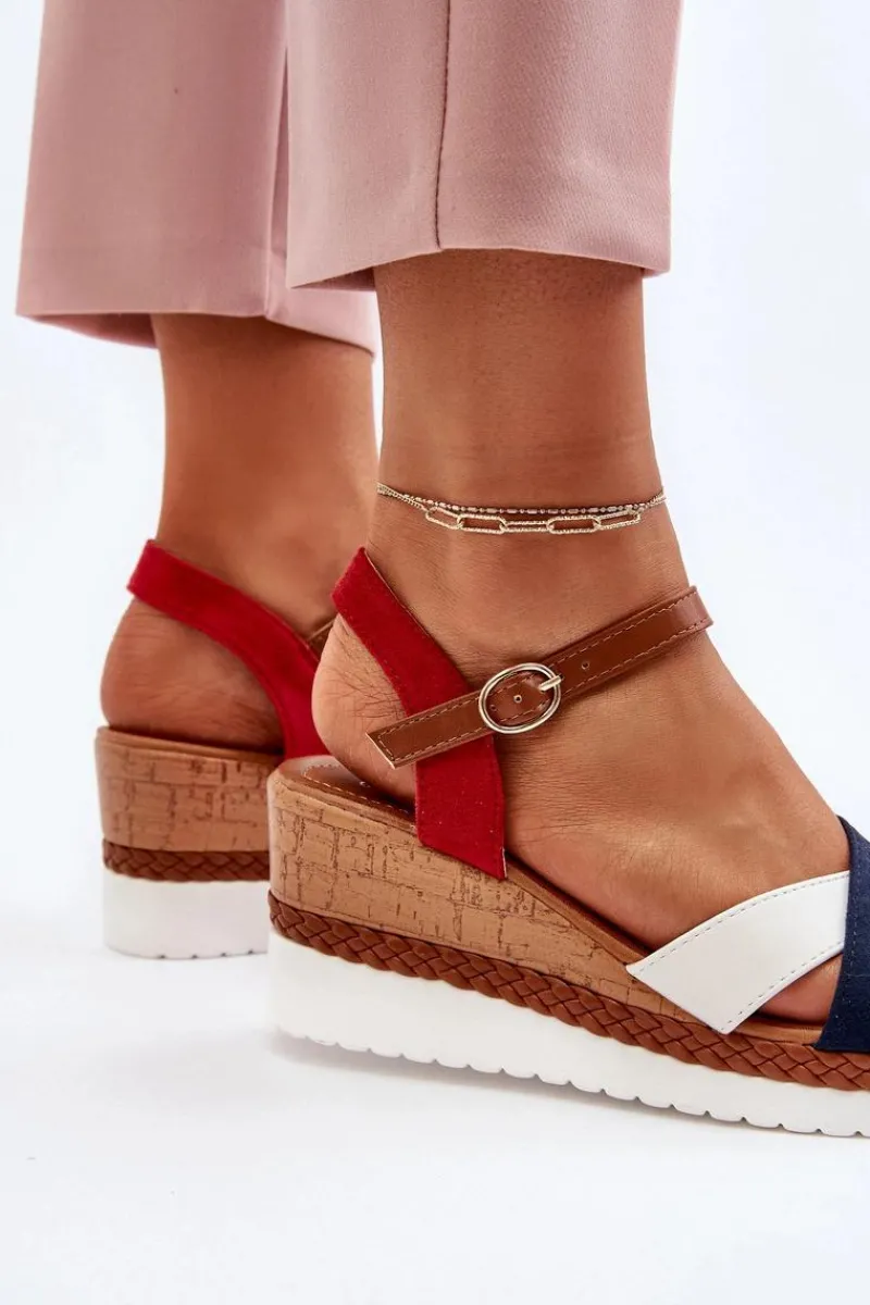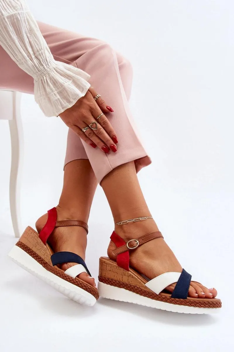Wyjątkowe sandały damskie łączą w sobie stylową platformę z koturnem, tworząc efektowny design. Ich unikalny wygląd wynika z przeplatających się paseczków, co dodaje im niepowtarzalnego charakteru. Dodatkowo miękka wkładka wykonana z eko skóry gwarantuje komfort noszenia nawet przez dłuższy czas. Buty zapinane są wokół kostki na sprzączkę z regulowanym paskiem, co pozwala na odpowiednie dopasowanie do stopy. To idealny wybór dla tych, którzy szukają zarówno stylu, jak i wygody w letnich stylizacjach! Przy wyborze rozmiaru prosimy sugerować się tabelą rozmiarów.
