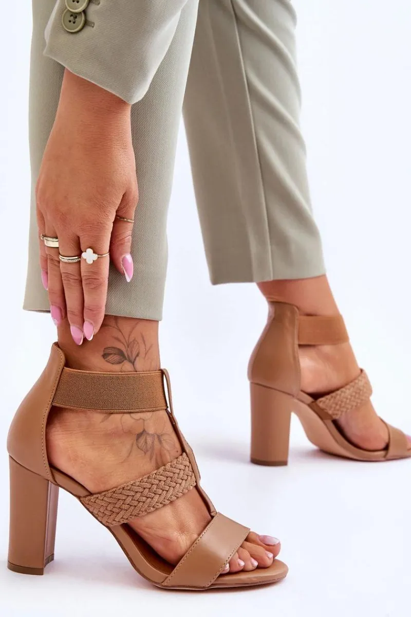 Damskie sandałki o fasonie botków świetnie sprawdzą się w cieplejsze dni. Model ten został wykonany z eko skóry. Zostały osadzone na stabilnym obcasie w postaci słupka. Sandałki posiadają na środku pleciony pasek oraz u góry gumkę pozwalającą na odpowiednie dopasowanie do tęgości nogi. Buty te posiadają miękką wkładkę. Przy wyborze rozmiaru prosimy sugerować się tabelą rozmiarów.