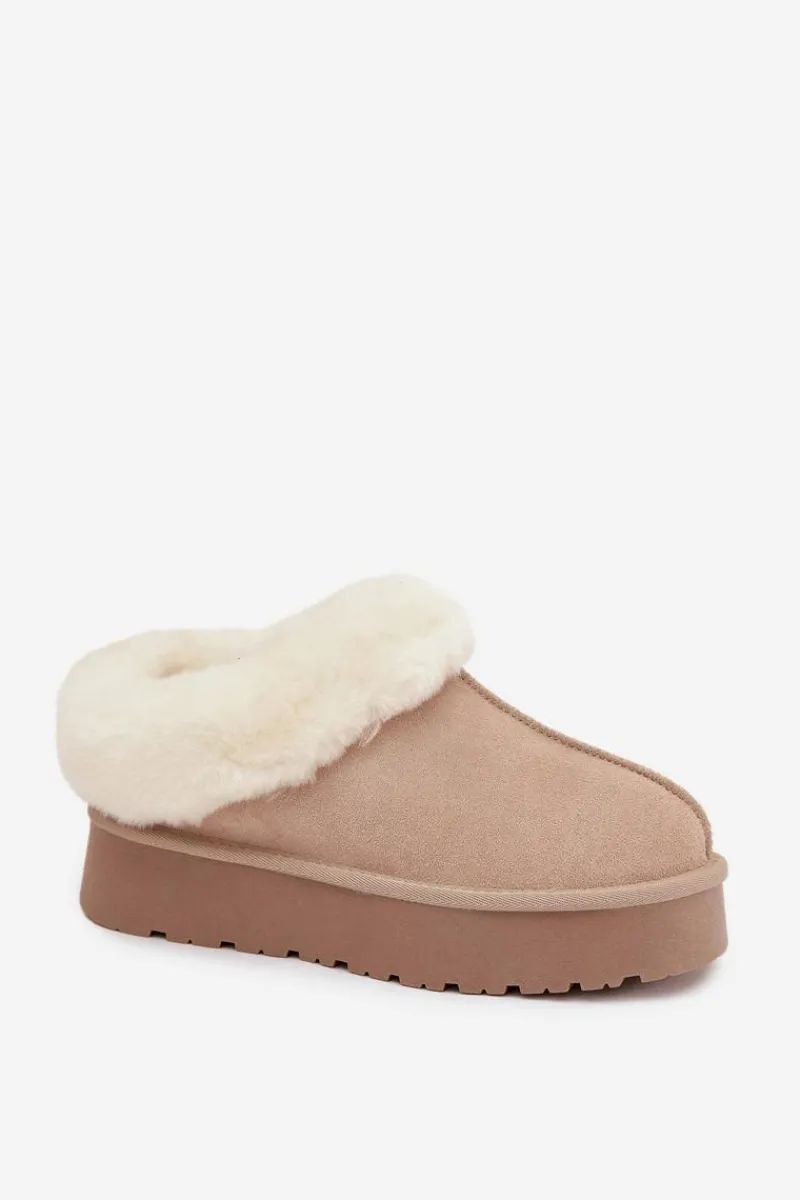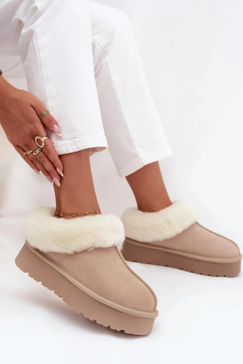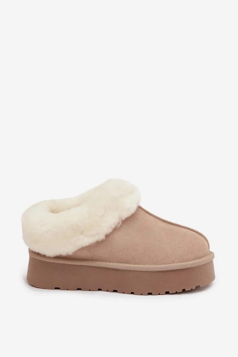 Śniegowce to niezawodne obuwie na zimowe wyjścia, które łączy styl i funkcjonalność. Wykonane z naturalnego zamszu. Osadzone na platformie z gumowego tworzywa skutecznie izolują od chłodnego podłoża, zapewniając komfort nawet podczas długich spacerów. Na górze cholewki i wewnątrz buta znajduje się miękkie futerko, które otula stopy przyjemnym ciepłem i dodaje obuwiu przytulnego, zimowego charakteru. To model, który świetnie sprawdzi się zarówno w casualowych stylizacjach z jeansami, jak i w połączeniu z legginsami.