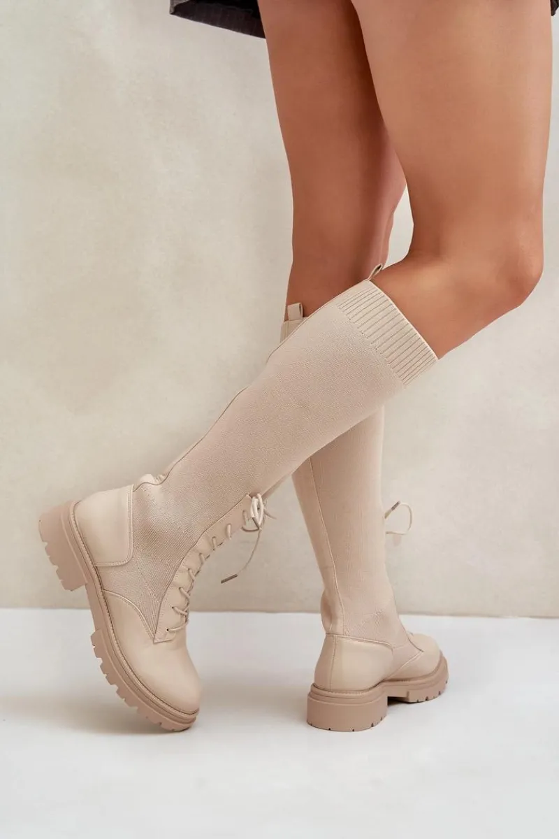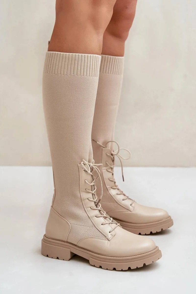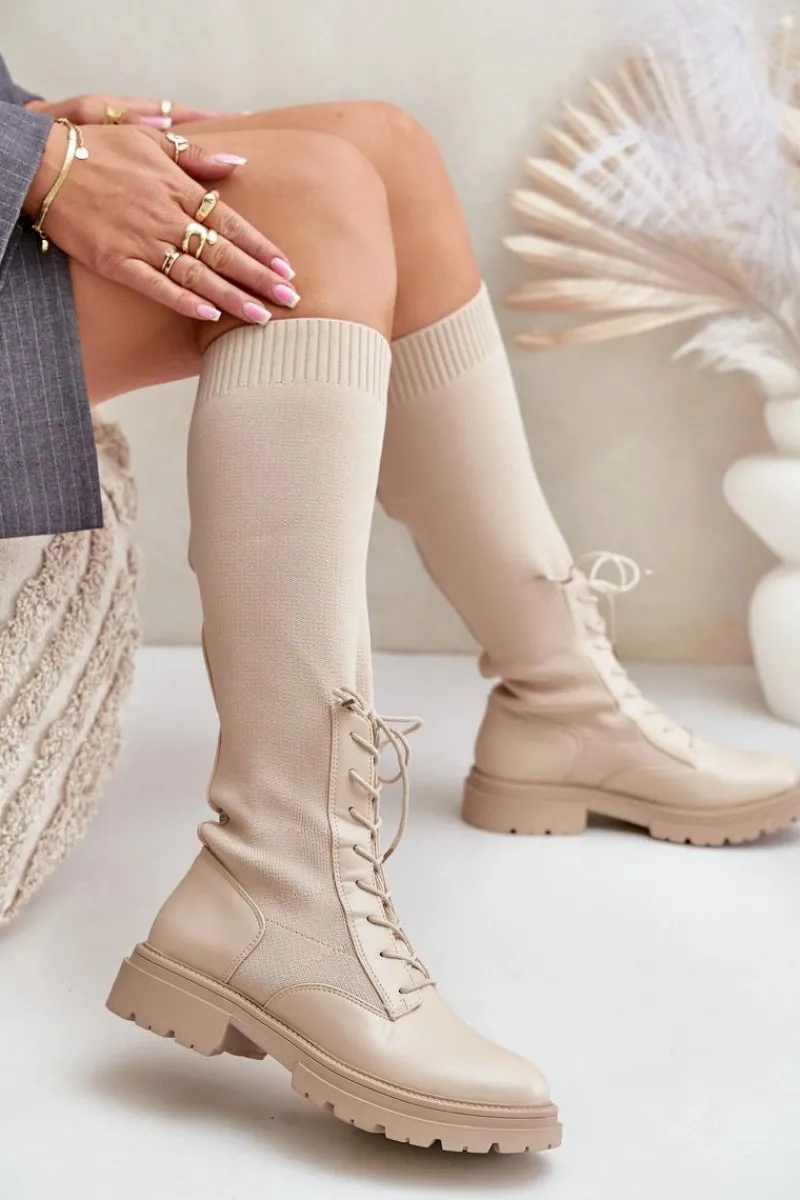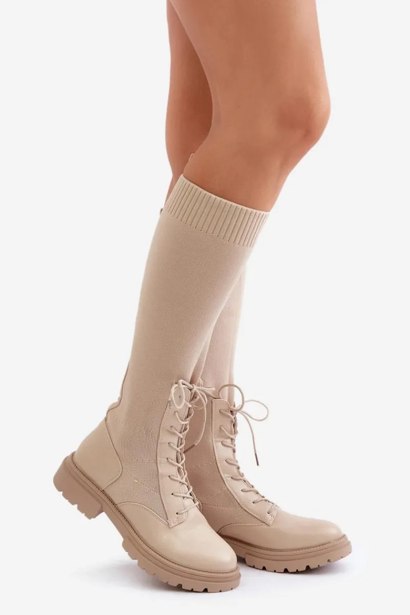 Damskie kozaki wykonane z połączenia ekologicznej skóry i materiału tekstylnego. Model wyróżnia się zaokrąglonymi noskami, które gwarantują komfort noszenia. Wnętrze butów jest ocieplone kocem obuwniczym, ograniczonym do części stopy. Elastyczna cholewka ze sznurowaniem nowoczesny, stylowy charakter. Przy wyborze rozmiaru prosimy kierować tabelą rozmiarów.