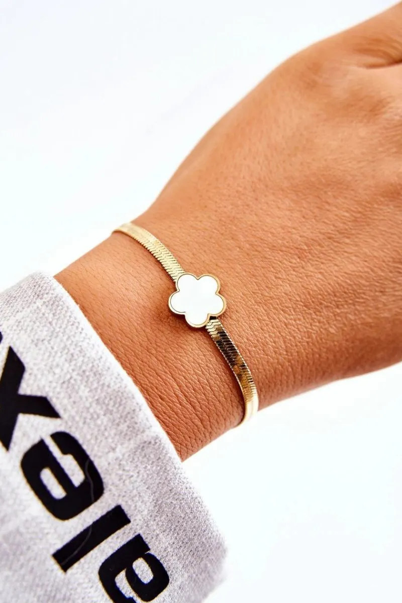 Best Damska Bransoletka Z Białym Kwiatem Złota Bransoletki
