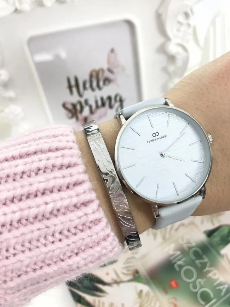 Jules to klasyczna i elegancka linia damskich zegarków Giorgio & Dario. Dostępne w dwóch rozmiarach – z małą 33mm tarczą oraz dużą 38mm. Zegarek posiada delikatnie płaskie szkiełko, dzięki temu jeszcze lepiej prezentuje się na ręce a jednocześnie jest bardziej czytelny. Tarcza jest dodatkowo zdobiona przepiękną szlifowaną kopertą w kolorze paska. Pasek wykonany z delikatnej w dotyku skóry ekologicznej z możliwością łatwiej regulacji, koperta w złotym kolorze ze stali chirurgicznej, pasuje zarówno do eleganckich jak i codziennych stylizacji. Wysoka jakość wykonania mechanizmu i koperty.
