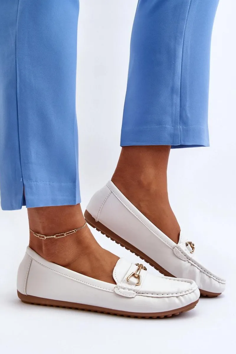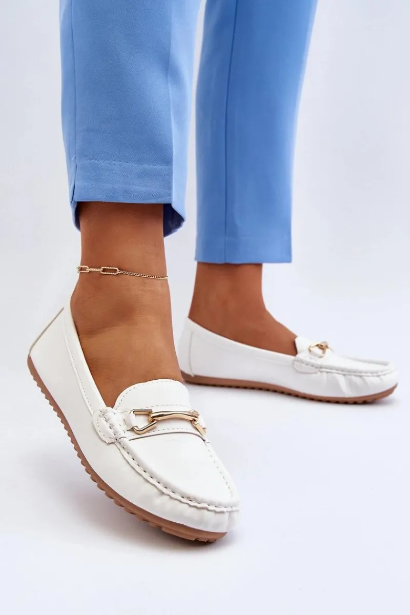 Mokasyny damskie to obuwie, które powinno znaleźć się w szafie każdej kobiety. Wykonane z eko skóry. Przód ozdobiony paseczkiem ze złotą ozdobą. Zaokrąglone noski dodają im subtelnego uroku. Ten klasyczny fason z pewnością dopełni wiele wiosenno-letnich stylizacji! Przy wyborze rozmiaru prosimy sugerować się tabelą rozmiarów.