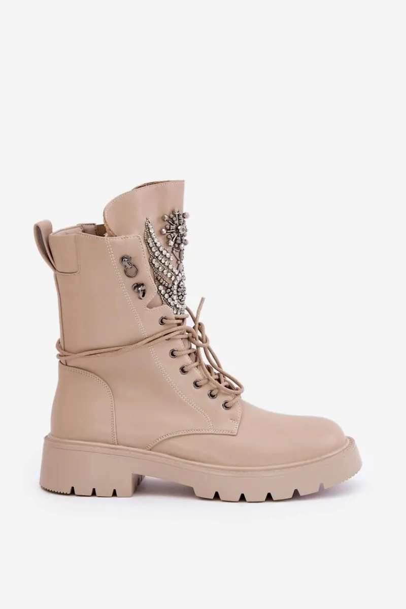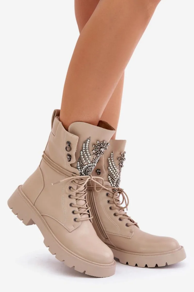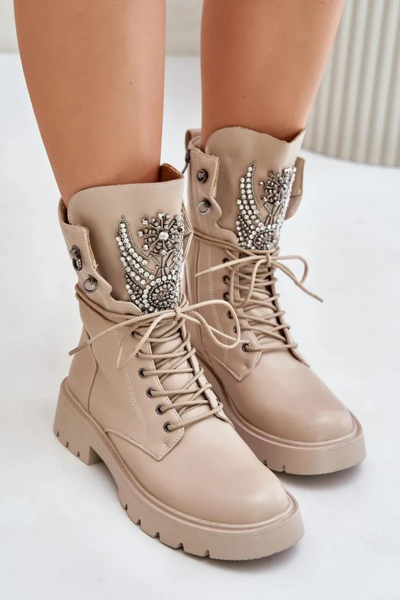 Ocieplane botki workery wykonane z eko skóry to stylowa i funkcjonalna propozycja na chłodniejsze dni. Osadzone na płaskim obcasie, zapewniają komfort noszenia, a dzięki zapięciu na zamek i sznurowaniu łatwo je dopasować do stopy. Zaokrąglone noski dodają klasycznego wyglądu, a zdobienie na języku wprowadza modny akcent. To idealny wybór dla osób ceniących wygodę i oryginalny design w codziennych stylizacjach. Przy wyborze rozmiaru prosimy sugerować się tabelą rozmiarów.